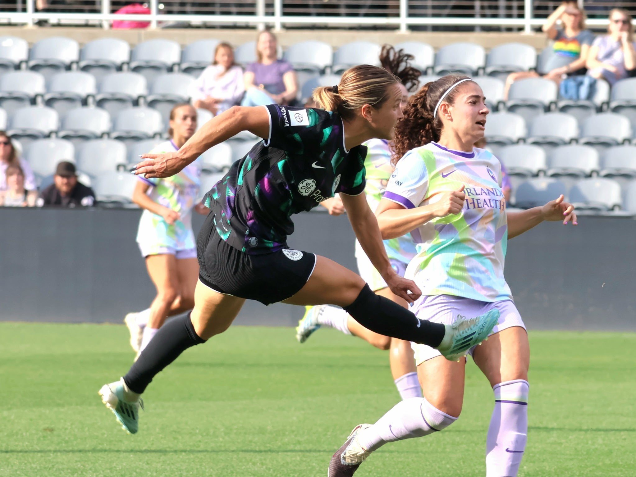 There was only one yellow card for Racing in the match. It was a late tactical foul from Morris, so not much to write about there. Let me then use this space to complain about the official’s management of the match. I think they (eventually) got almost every call right. It was a well officiated match. It was also an inefficiently managed one. Shortly after the match, there was lightning in the area, so we were rather fortunate to get the match in before it happened. I frequently complain about the amount of stoppage time that gets added in NWSL matches. The numbers yesterday didn’t bother me (6 in the first and 7 in the second) because they seemed right to me. What bothered me was that too much of that stoppage time was the officials doing administrative things very slowly. There were a couple of VAR stops for no reason that I saw. After one stoppage the officiating team almost awarded a dropped ball to Orlando instead of a freekick to Racing for a handball. Sports at is core is entertainment, so these unnecessary delays detract from our enjoyment.