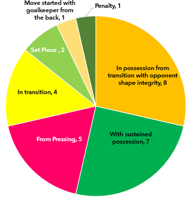 The last 3 are pretty self-explanatory. For a visual explanation of the move “started with the goalkeeper from the back” click here. It is a distinct category in my mind, because it is a dream goal if you like the playing out from the back mentality.
