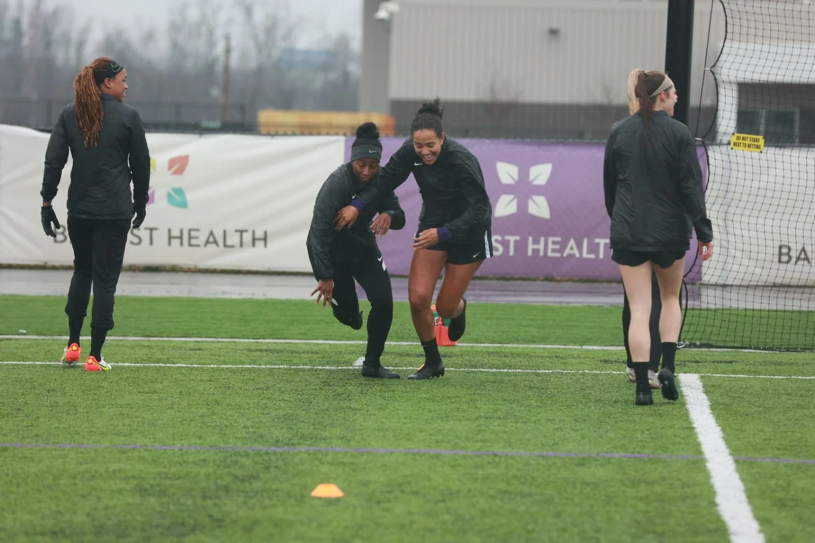 Coach Kim Björkegren conducted his first official Racing Louisville practices today. It was also the first practice at Lynn Family Sports Vision & Training Center for several players like Jae Howell and Jess McDonald. There were a few familiar faces as well like, CeCe Kizer. “It’s really weird being told that I am one of the older players,” according to Kizer. It will be her 4th year in the league, and she said that she was ready to step into a leadership role. On Coach Björkegren, CeCe said that her was “very funny” and “pretty loud”. She also commented that his practices were very focused on technical details. Rookie Jae Howell echoed those sentiments in regard to the technical nature of practice. Howell said that the first practice was spent getting to know her teammates and coaches. The practice itself had a lot of touches on the ball according to both Kizer and Howell.