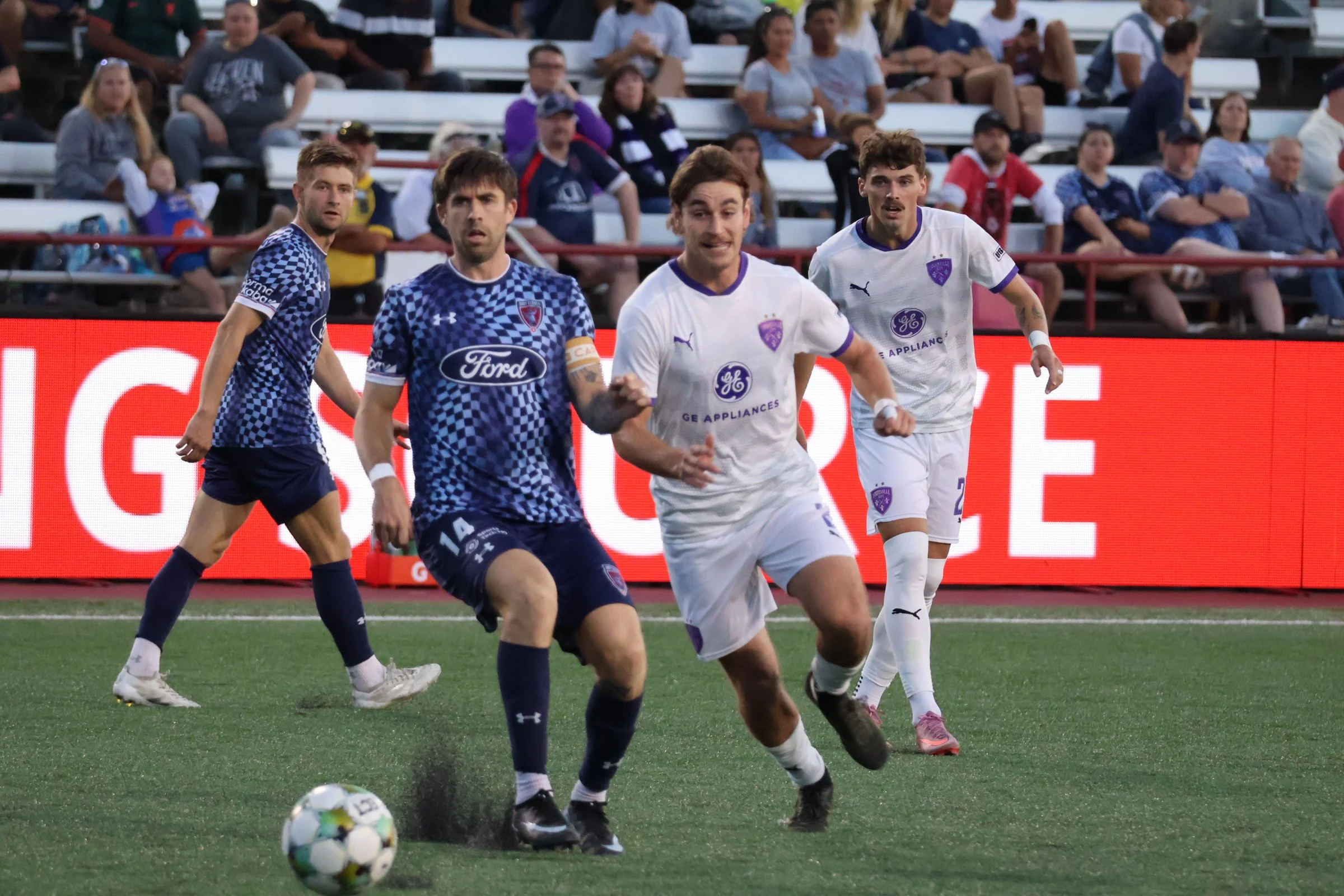 Lambert mishits a hopeful shot. Not sure what he was doing there. “F@#$ Louisville City” hits different from an 11-year-old.
