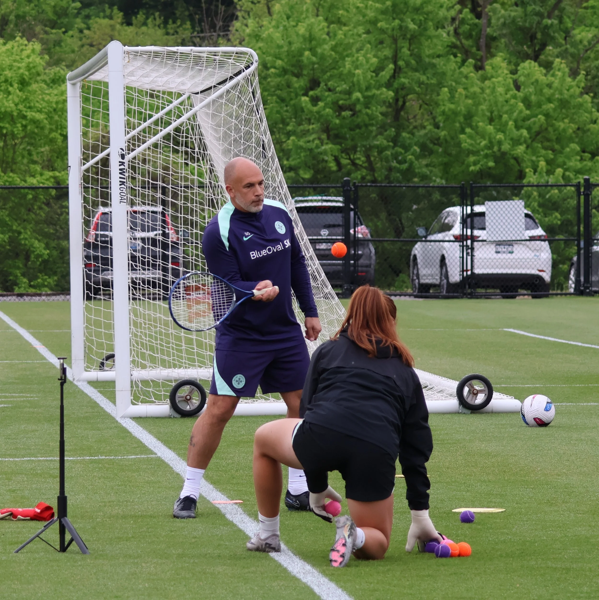 Keeper Coach Sergio Gonzalez has help with this drill from Jordyn Bloomer during Keeper warm-ups. I think we’d all agree that Sergio should wear his first-ever NWSL red card as a badge of honor.