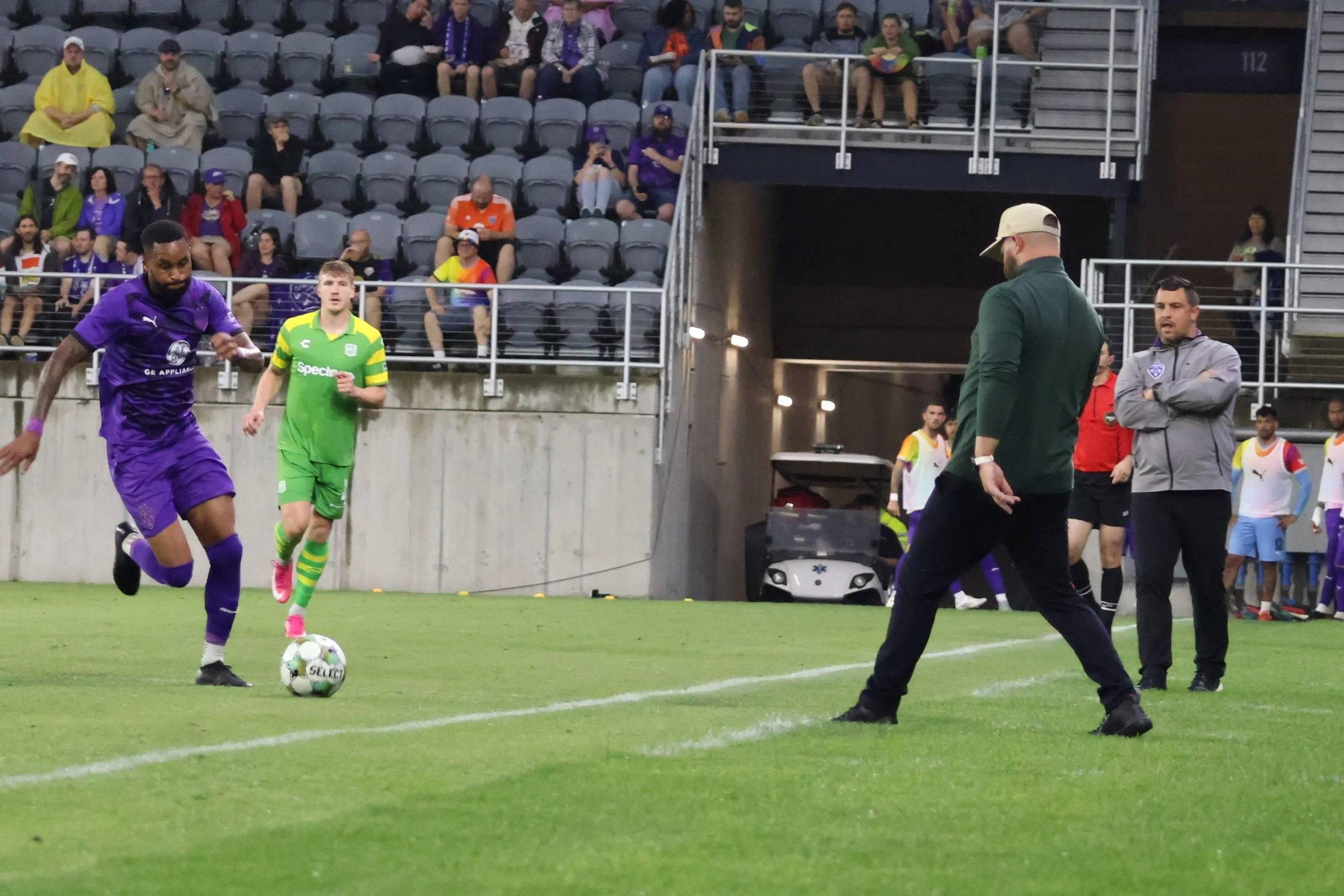 I don’t know what the Tampa Bay coach was up to here, maybe practicing a victory dance in case they ever win. Amadou Dia breezed past him and about 23 other Rowdies on his run.