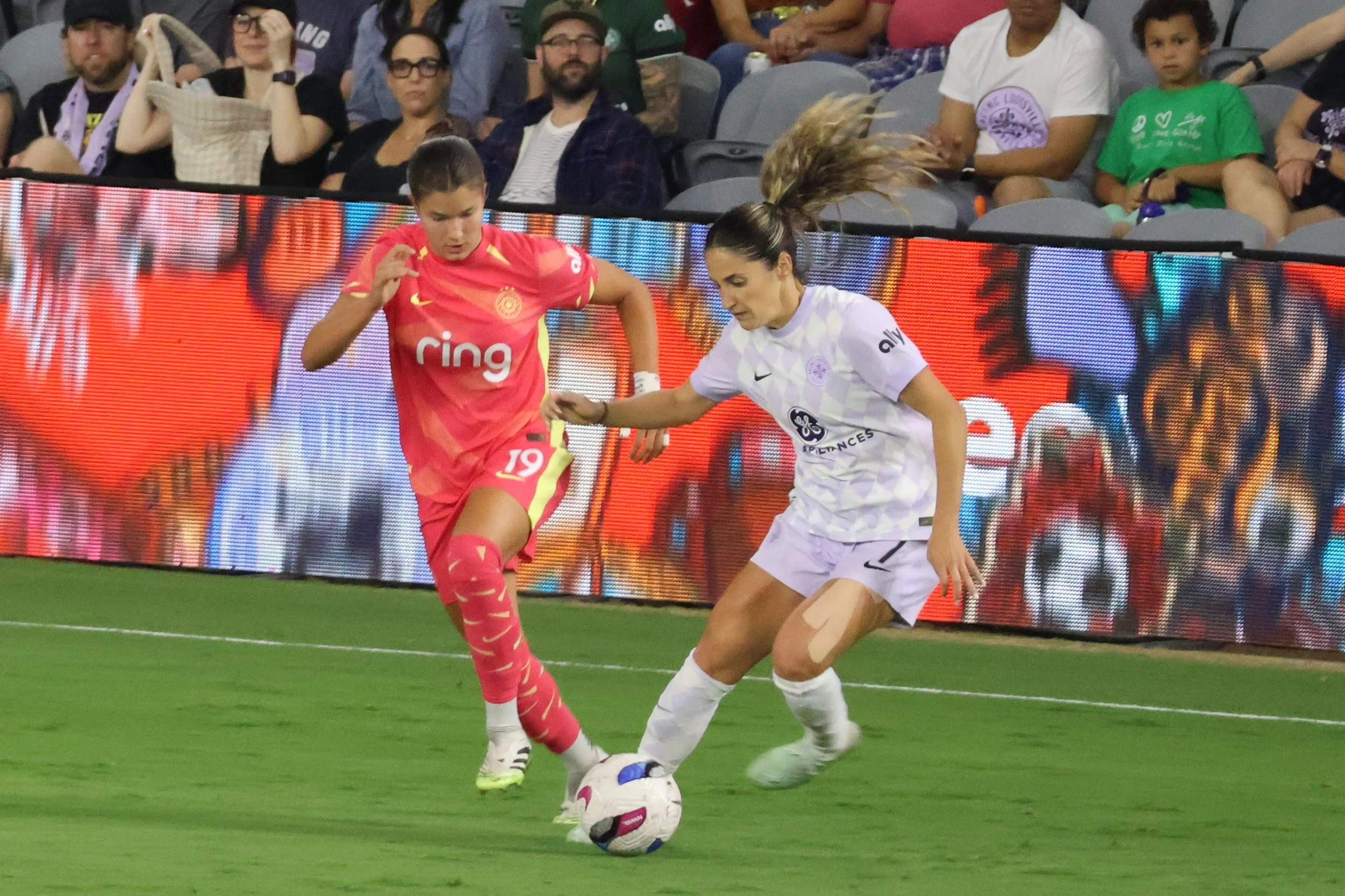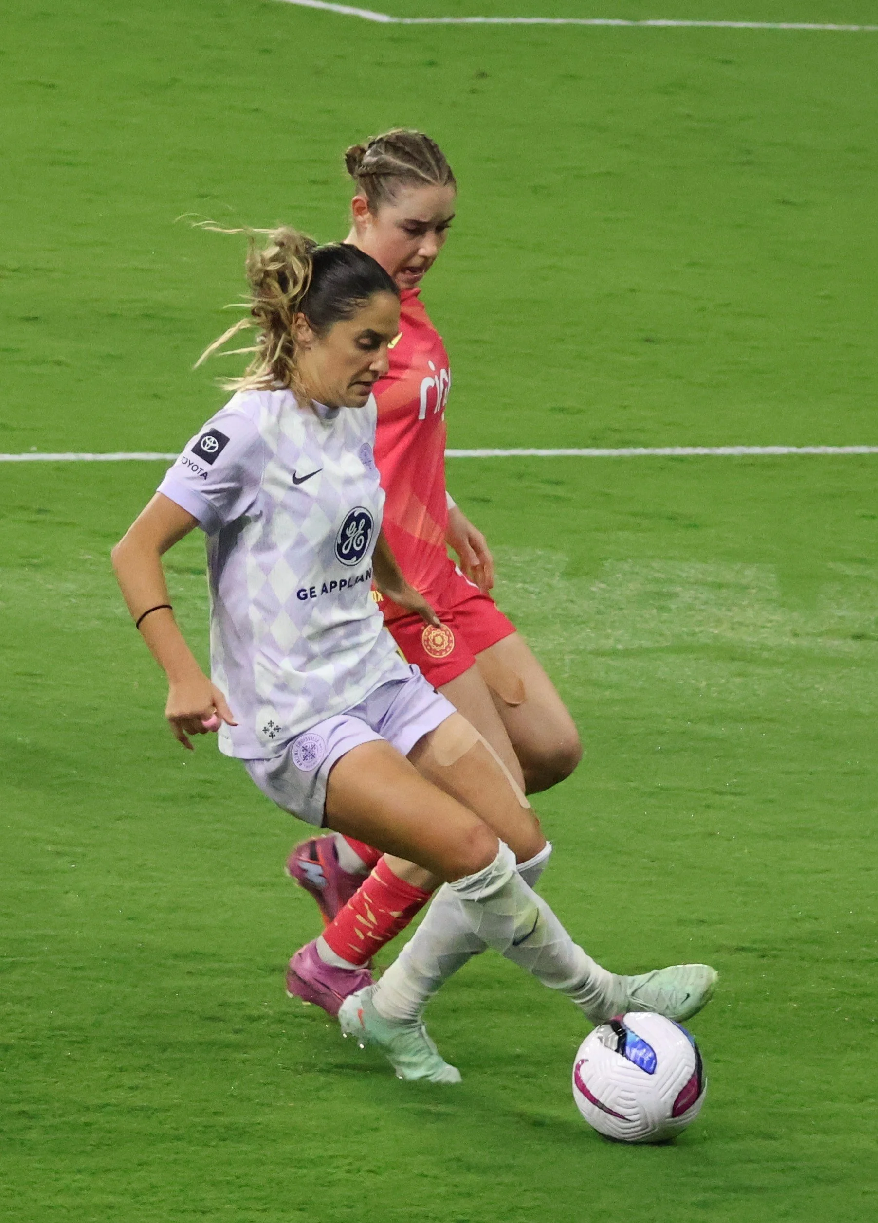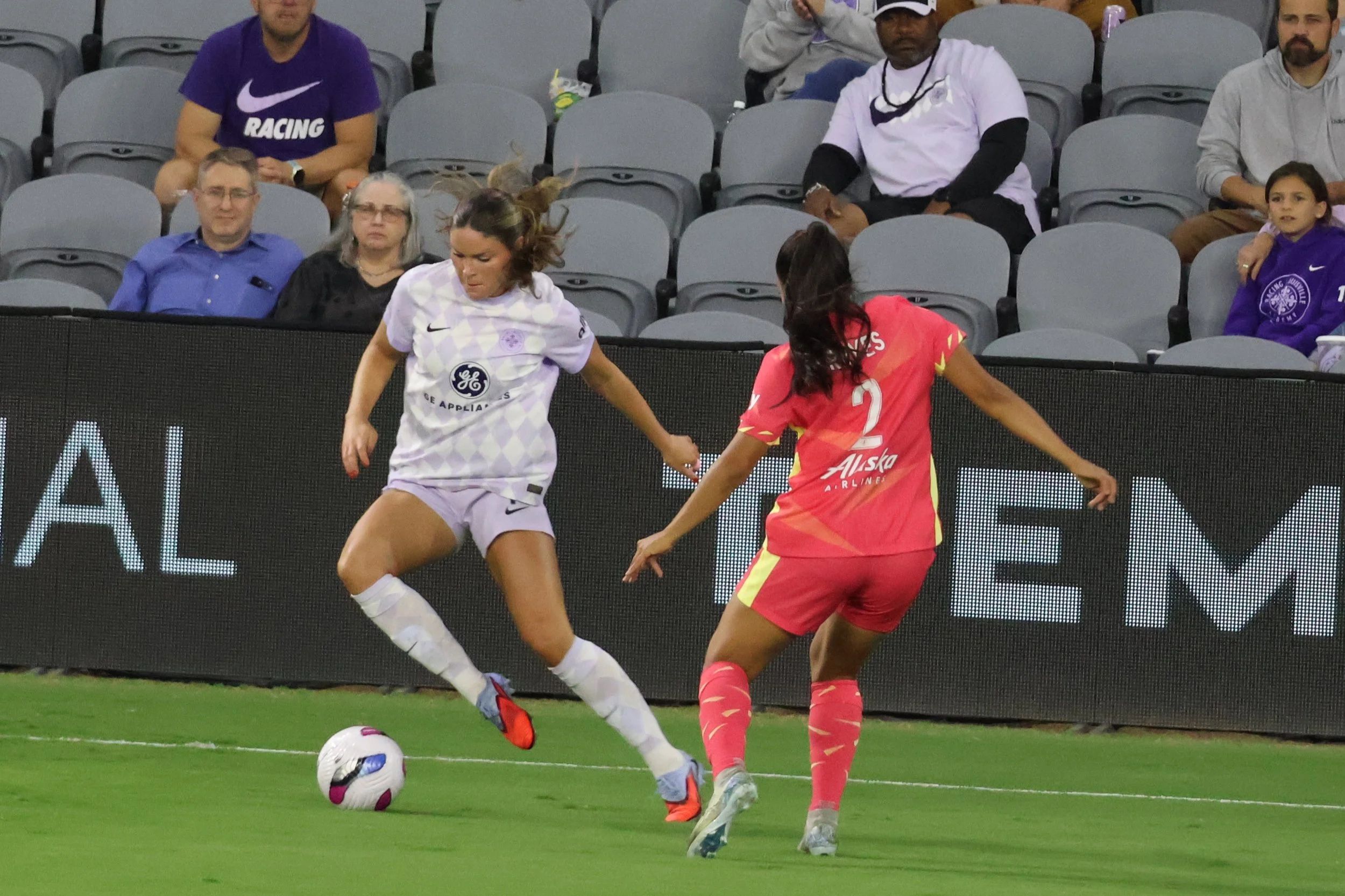 Savannah DeMelo uses her fancy footwork to taunt the Thorns early in the match.