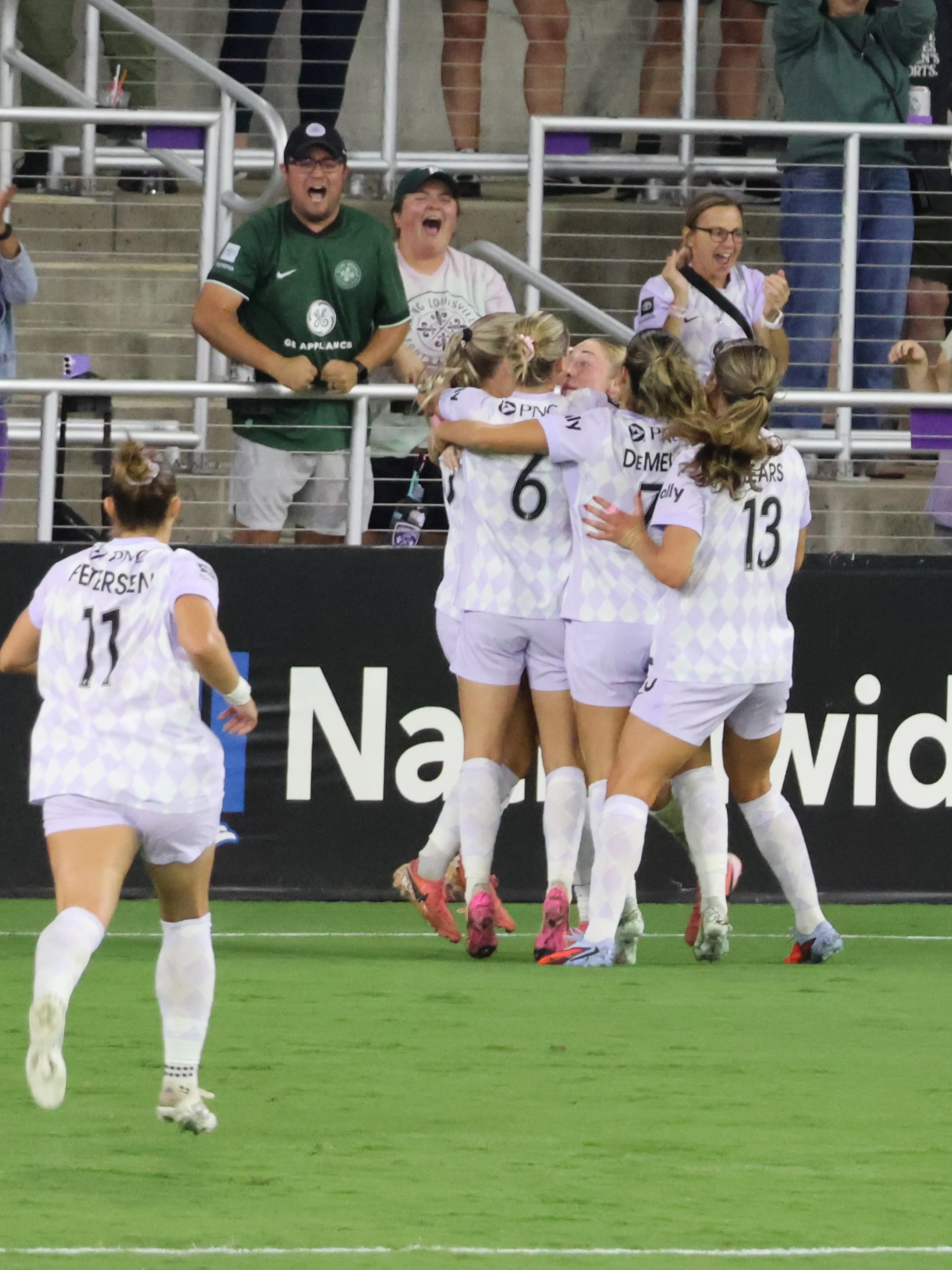 Katie O’Kane (she’s in there somewhere!) celebrates her first NWSL goal. Her teammates swarmed her like a Wawa Grand Opening. That pass from Sarah Weber was a beautifully choreographed play that made me so happy to be a Racing fan.