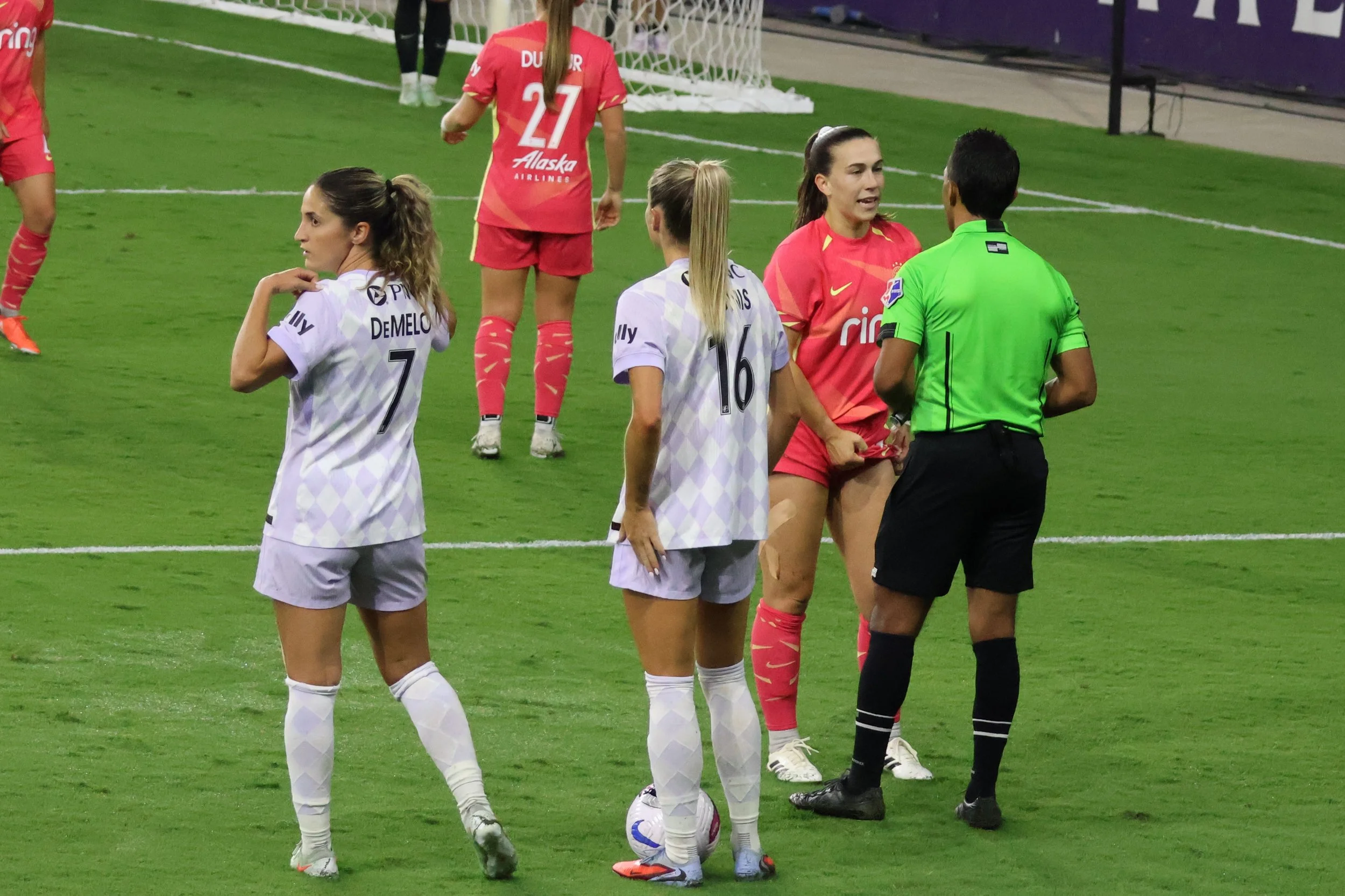 DeMelo and Sonis have discussed which McDonald’s Sav is hitting up for her post-match Filet o Fish and are now patiently waiting for Whiny Thorns player to end her rant about her shorts which have evidently shrunk mid-match. She must’ve put them in the dryer for too long.