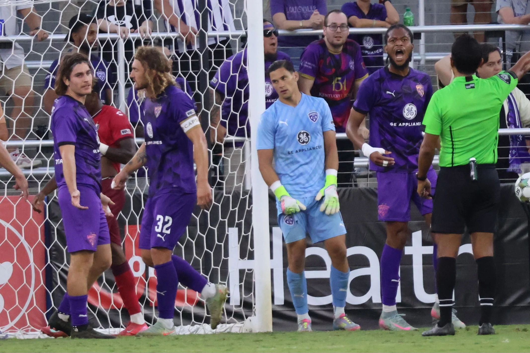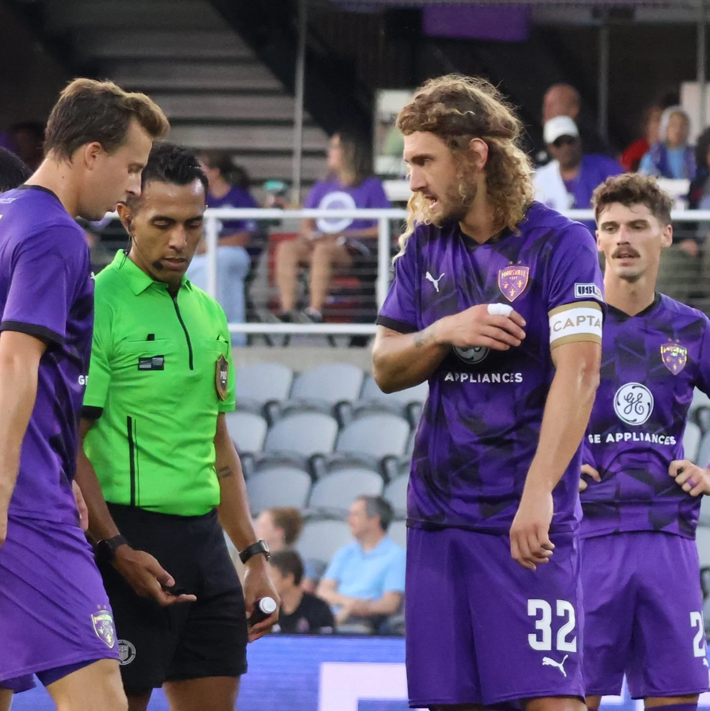Adams reminds the referee that he, Kyle, is the Lou City captain, but he’s getting really tired of coming over and asking him, Invisible Ref, to do his job.