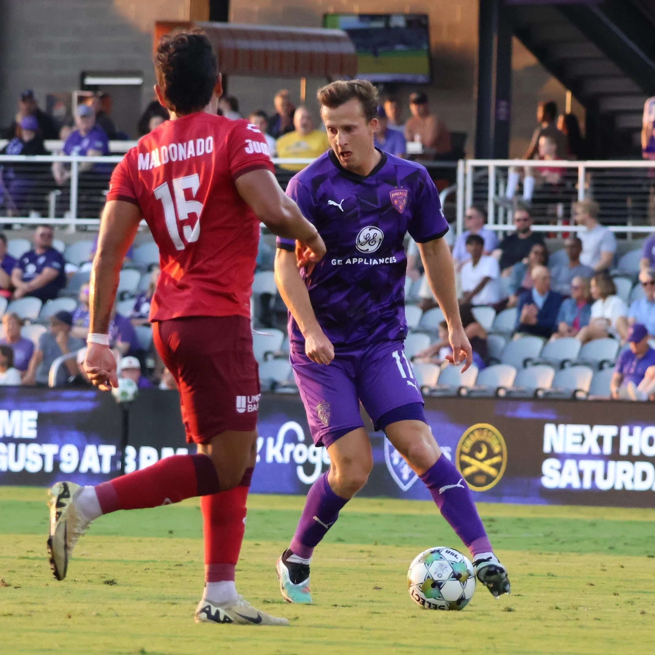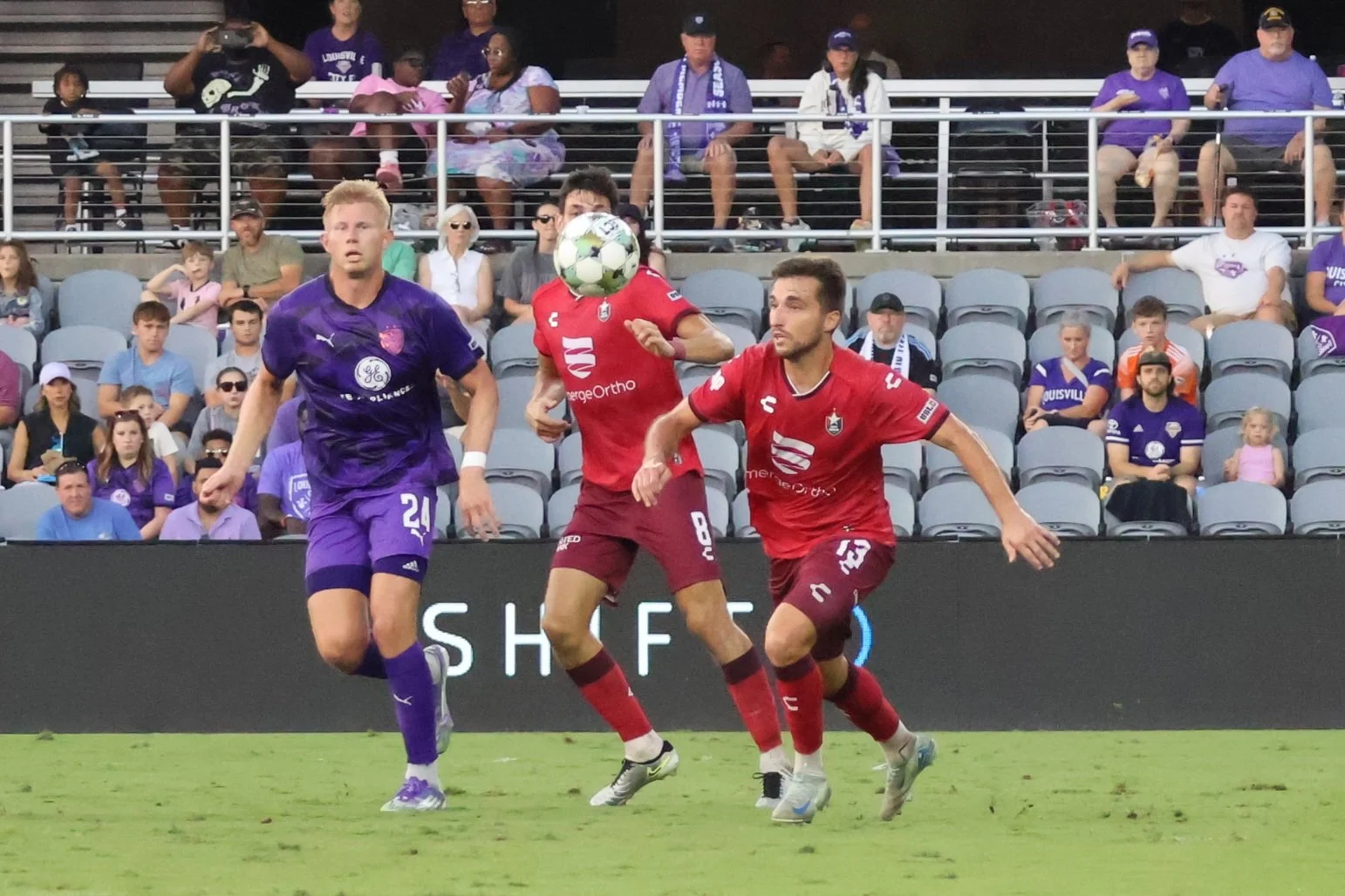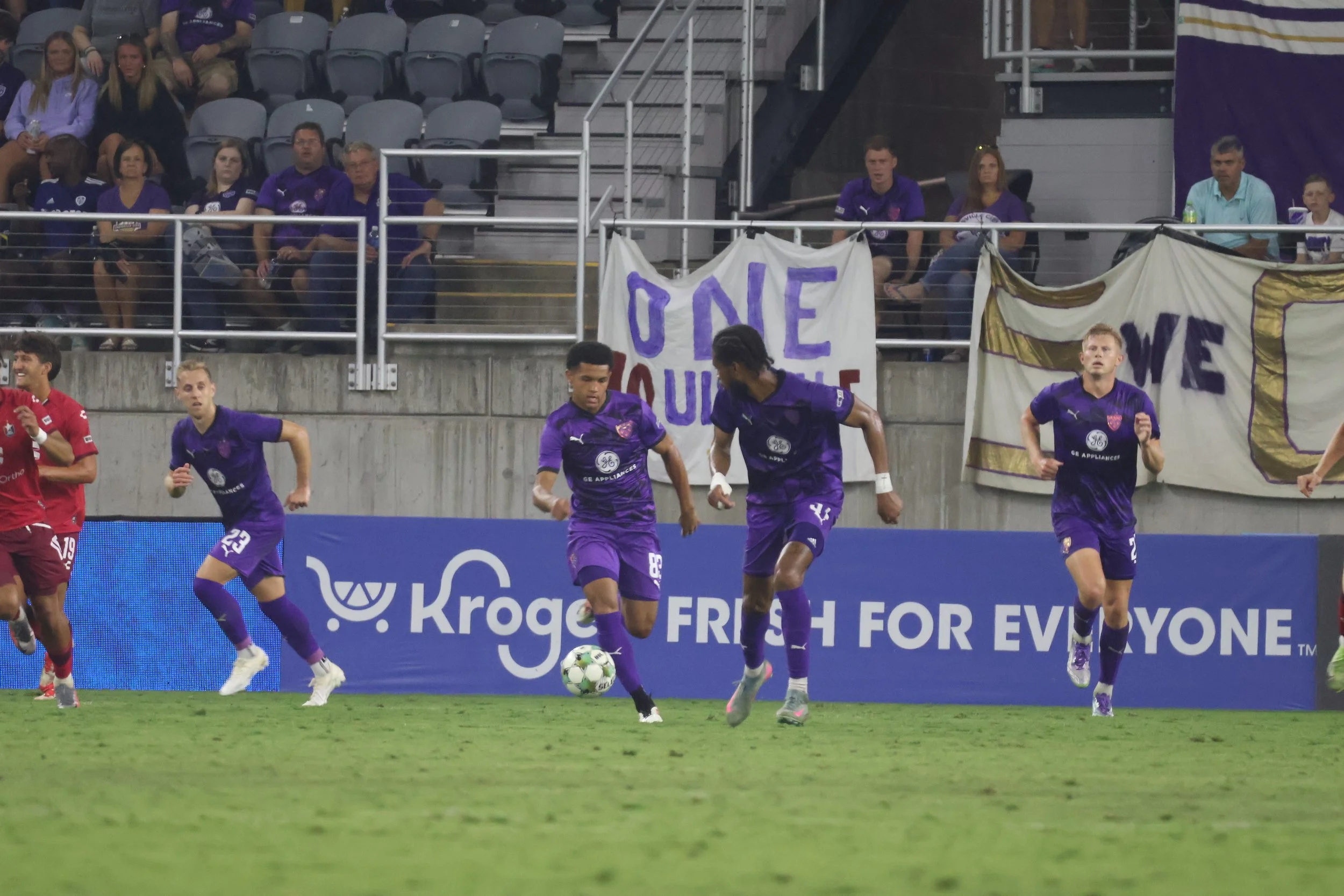 It was an action-packed night in the Purple City as North Carolina (who struggled again to make it all the way to Louisville) literally fought for their single goal. I vaguely remember seeing some green shirts on the pitch but there was no refereeing happening within a 5-mile radius. The Greens did dish out a yellow card to Coach Danny Cruz for some unknown reason, but NC’s #8 gave Kyle Adams a good shove during one of the Fight Breaks with not so much as a finger wagging from an official.