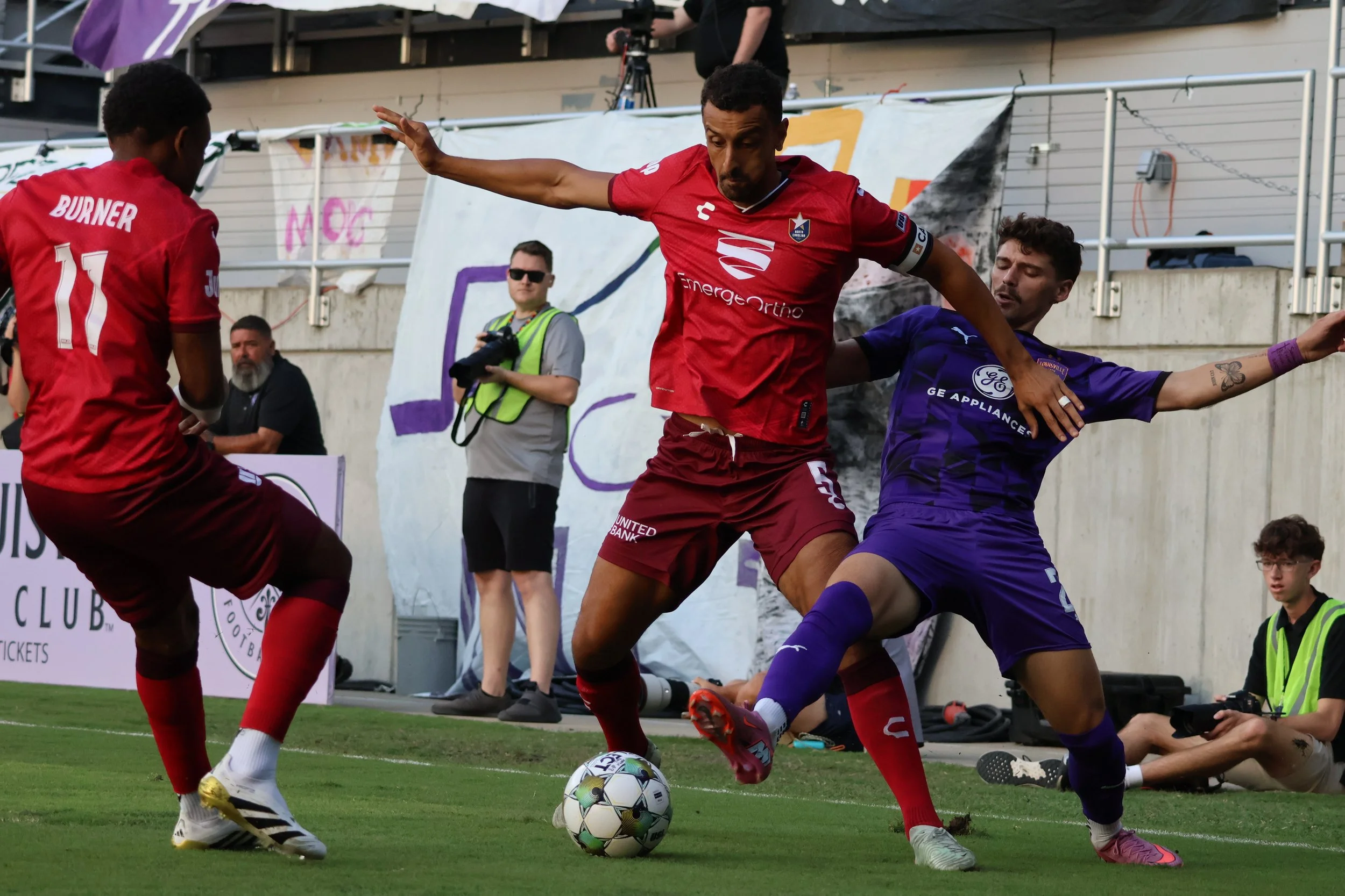 Since play was a free-for-all, Lou City racked up three goals in the 2nd half. If you were nice to Sam Gleadle this week, he gave you a ball to put in the back of the net. The Boys in Purple definitely played better in the second half, probably because they stayed on their level rather than stoop to the shenanigans of the NC Cowards. Enjoy some snaps of the action.