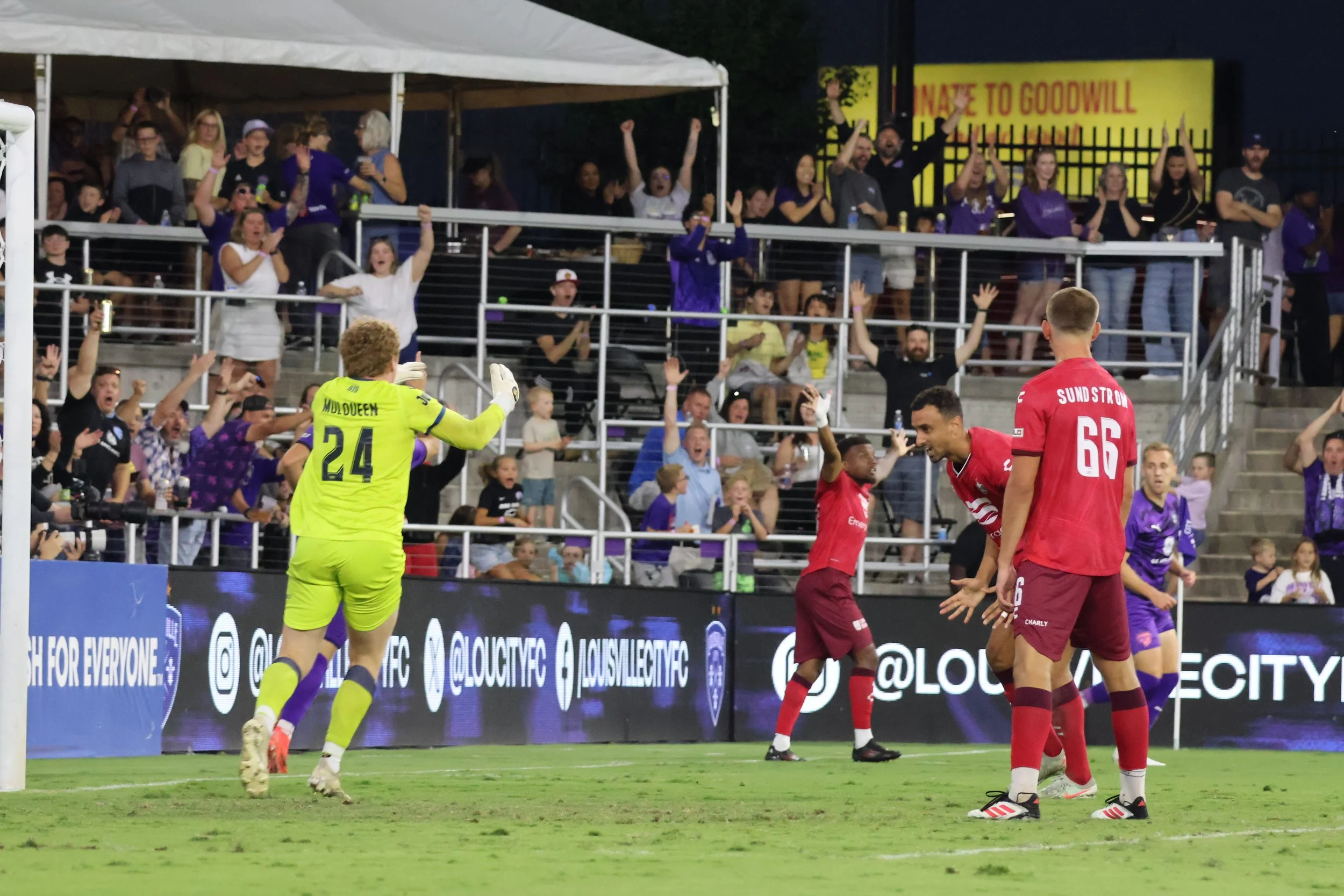 NC confirms that the ball was inbounds. They’re even celebrating with Lou City as Goodrum puts it in the net. Gleadle stays quiet in the corner.