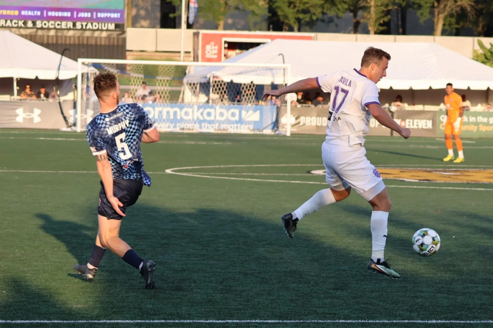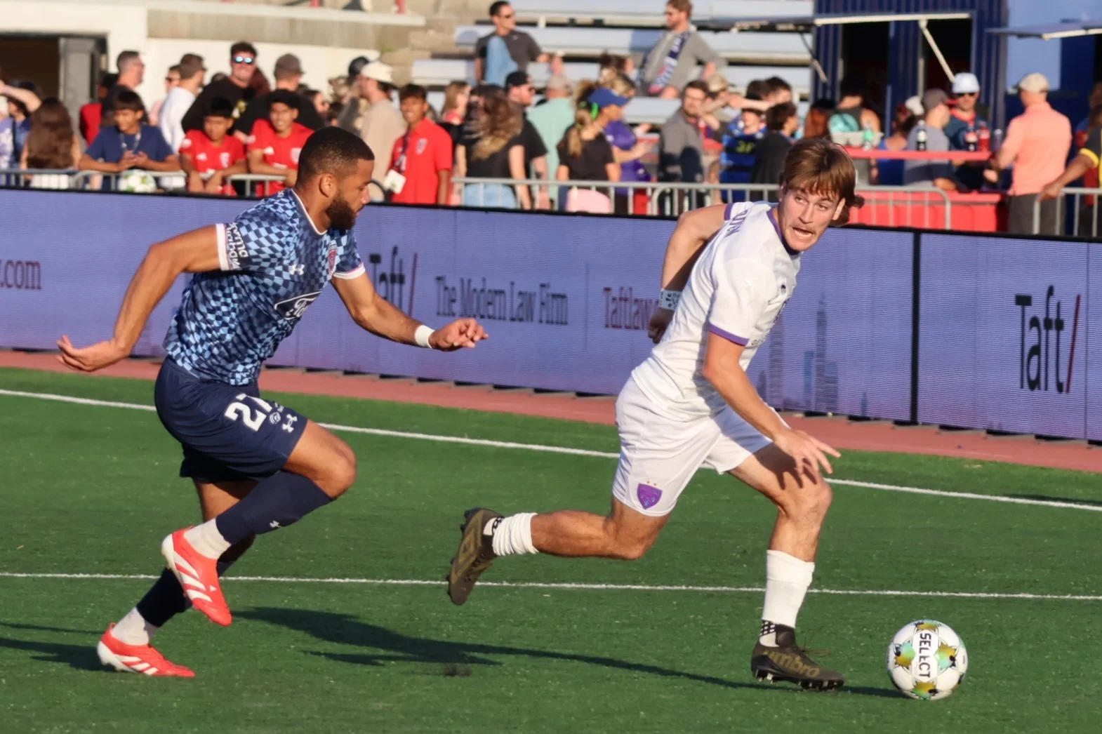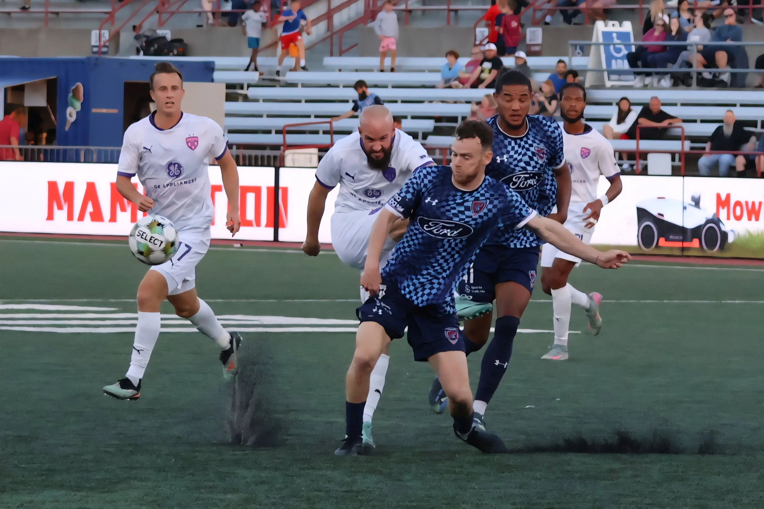 Kevon Lambert gracefully takes the ball down the pitch, ignoring the pleas from Indy for a high-five.