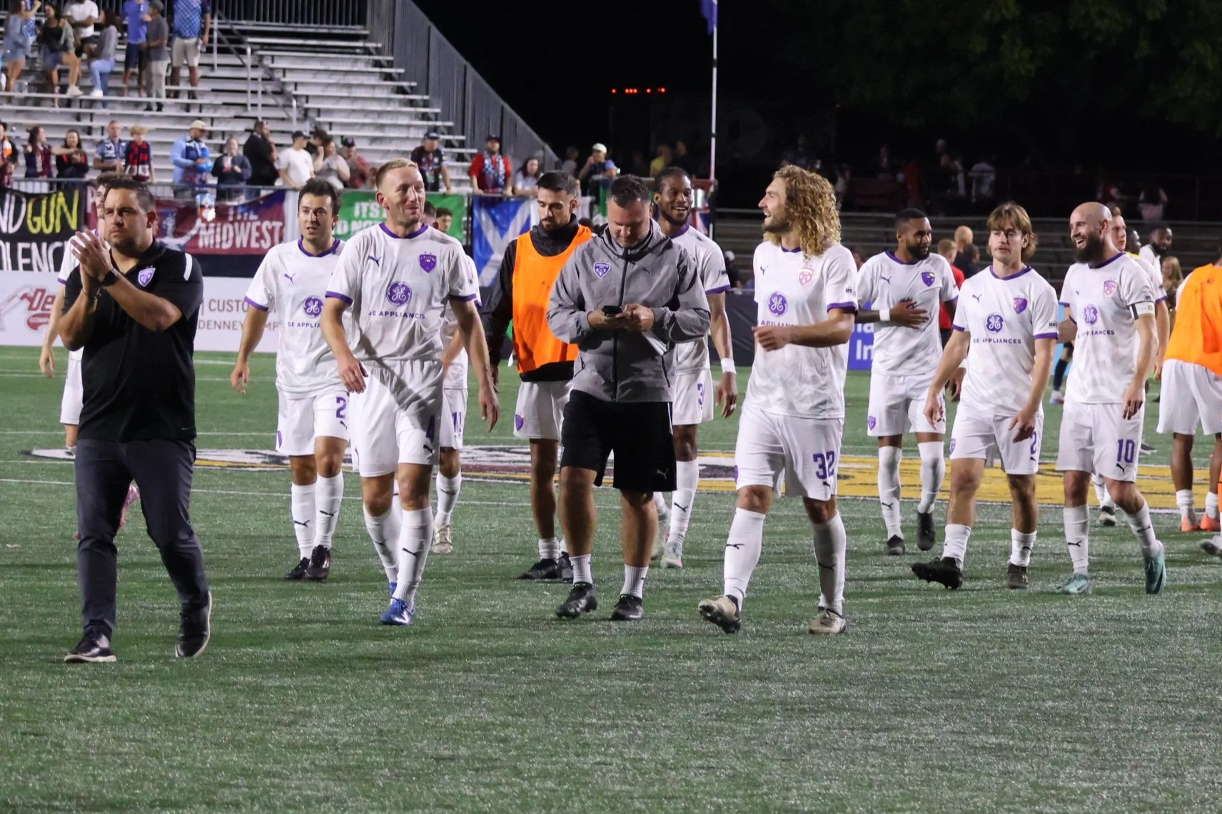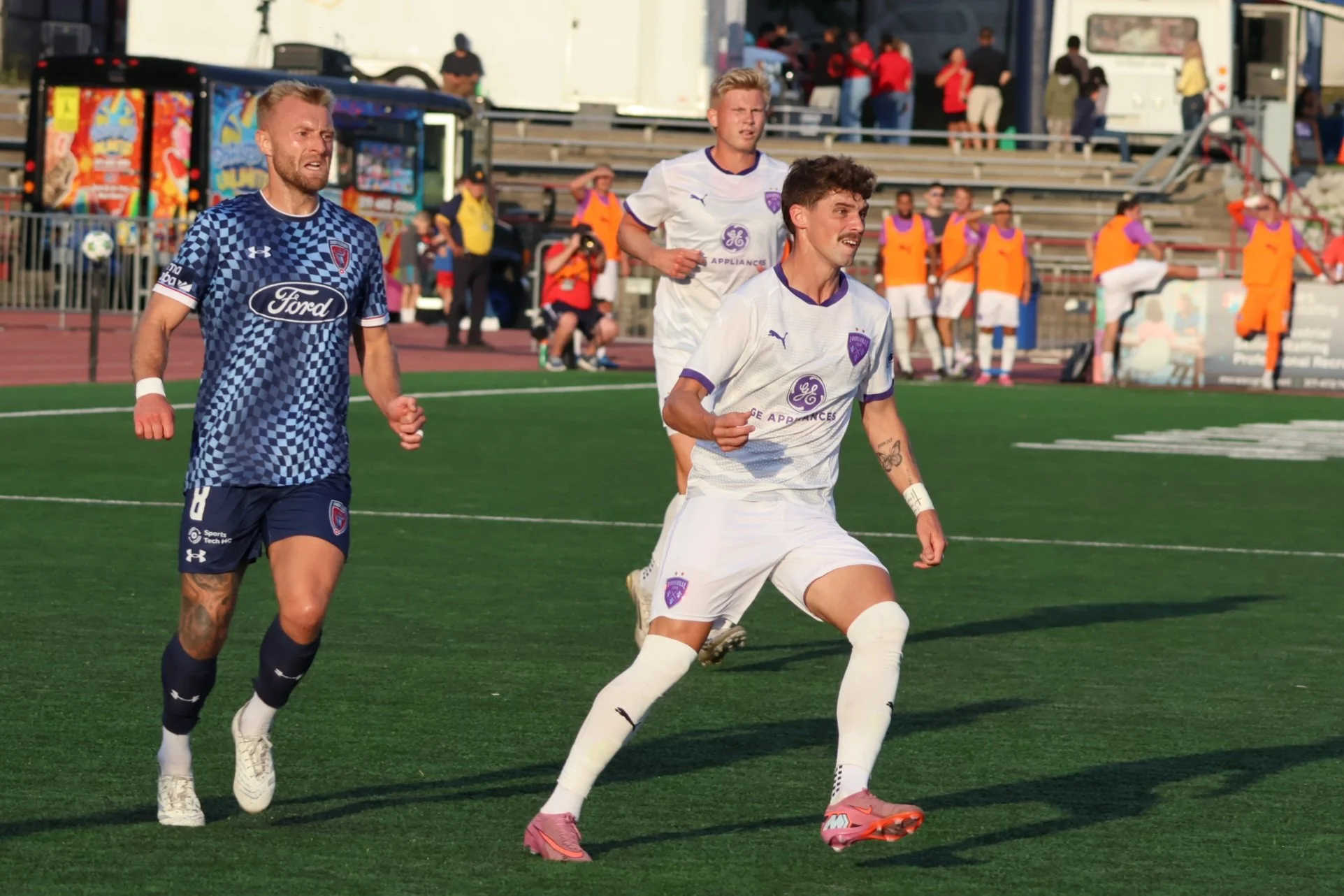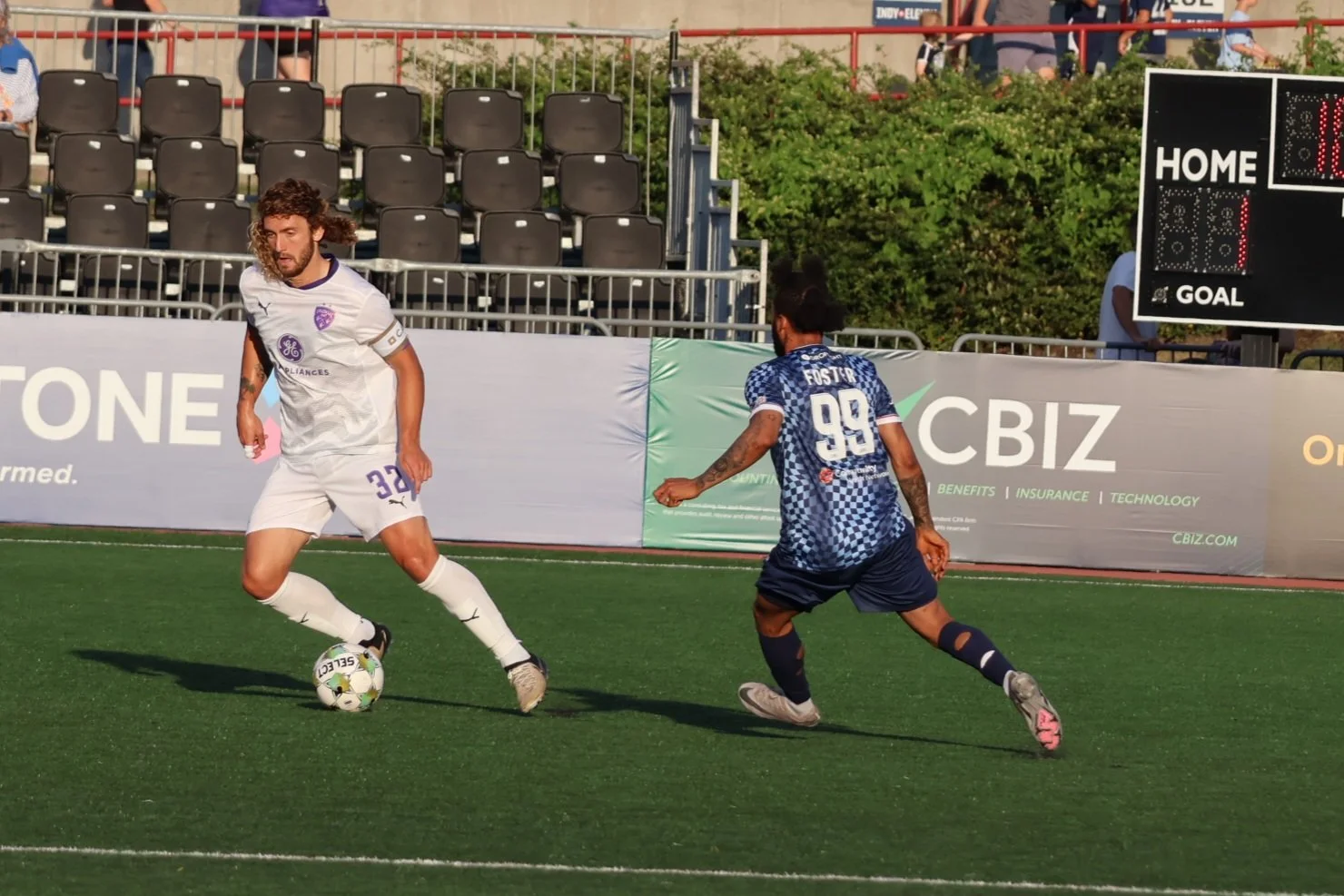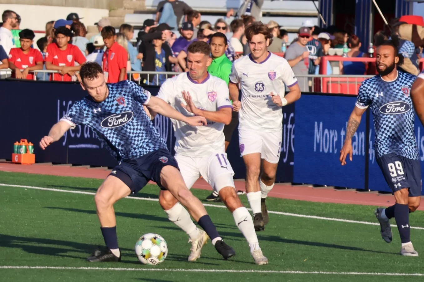 Kevon Lambert gracefully takes the ball down the pitch, ignoring the pleas from Indy for a high-five.