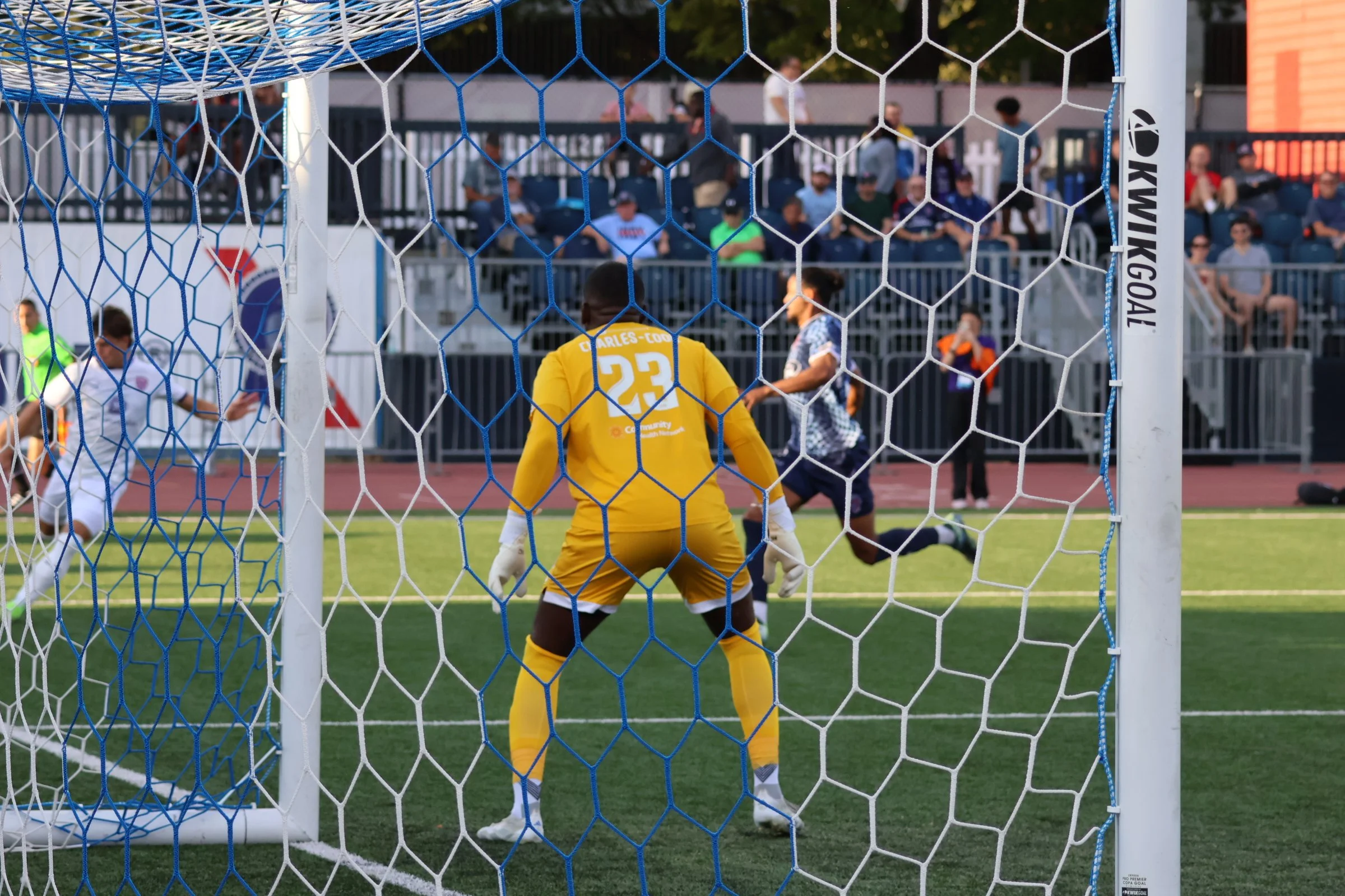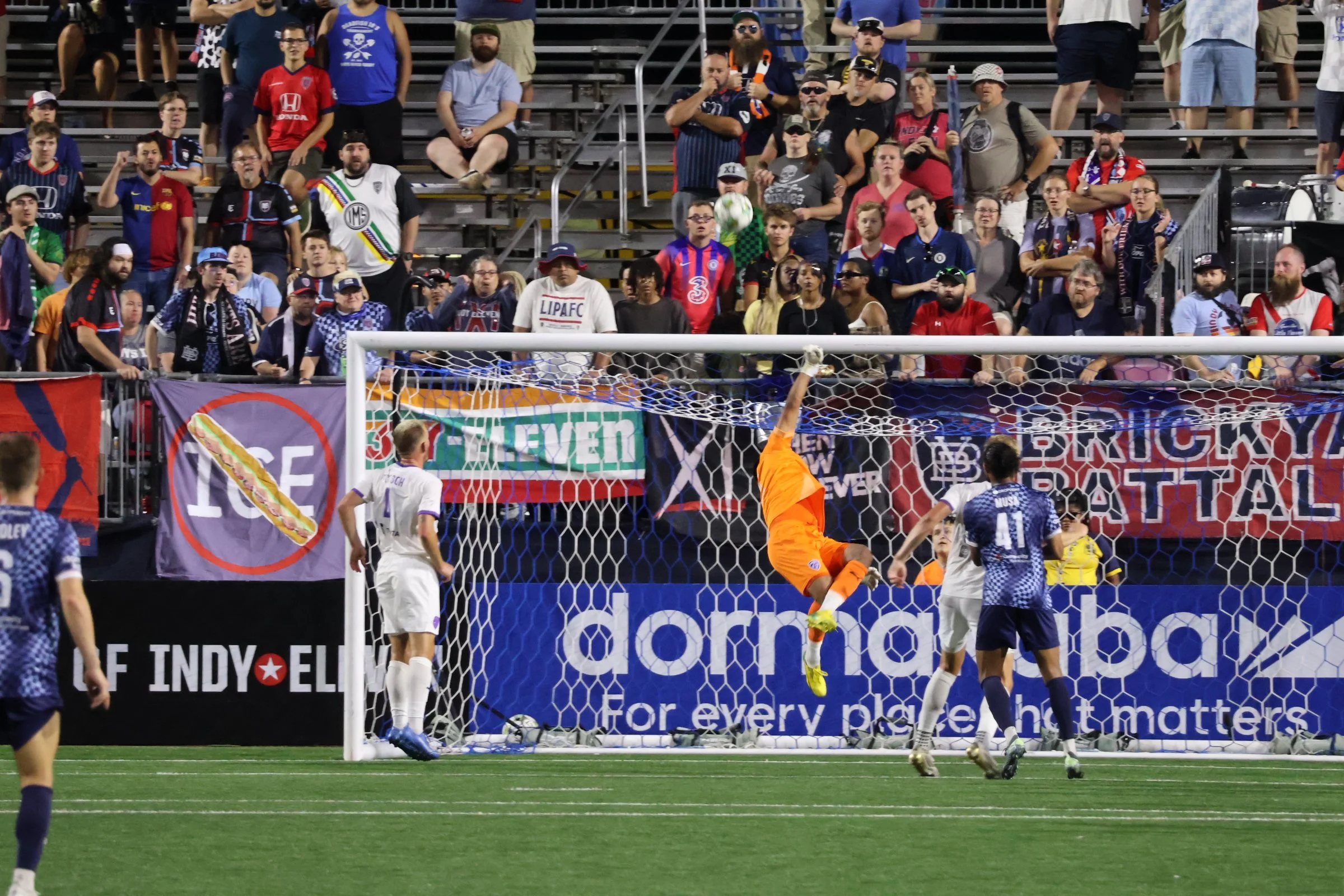 Goodrum immediately comes down to try to score and silence the profanity emanating from the supporter zone. The fans decided to let Goodrum know that “he sucks,” having done their research and realized that Goodrum is now just tied for 2nd in the Golden Boot race. He can only hope to one day match the extensive vocabulary of the Indy Eleven supporter zone.