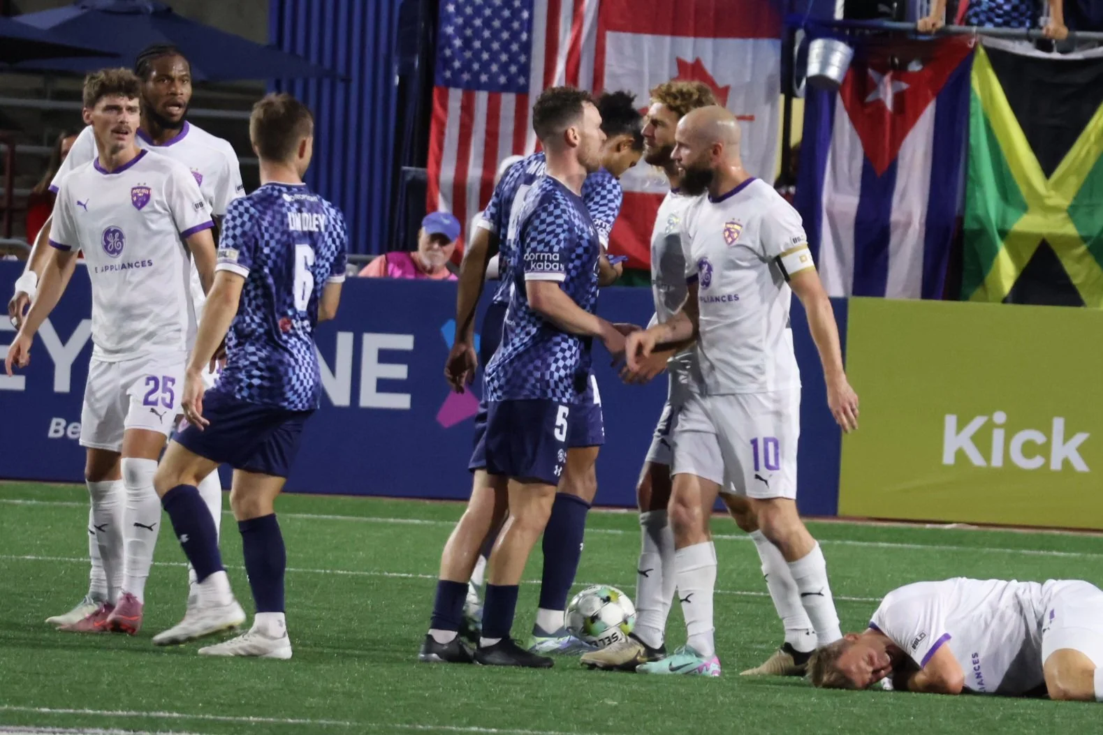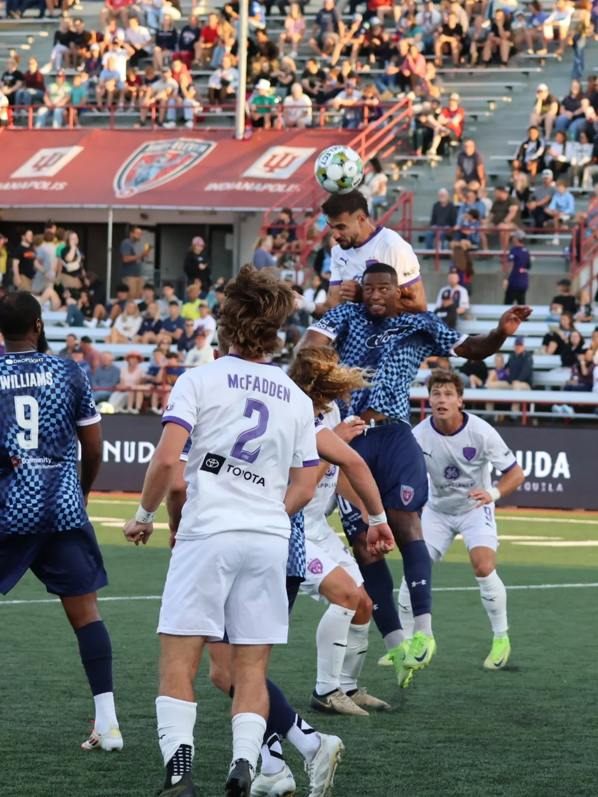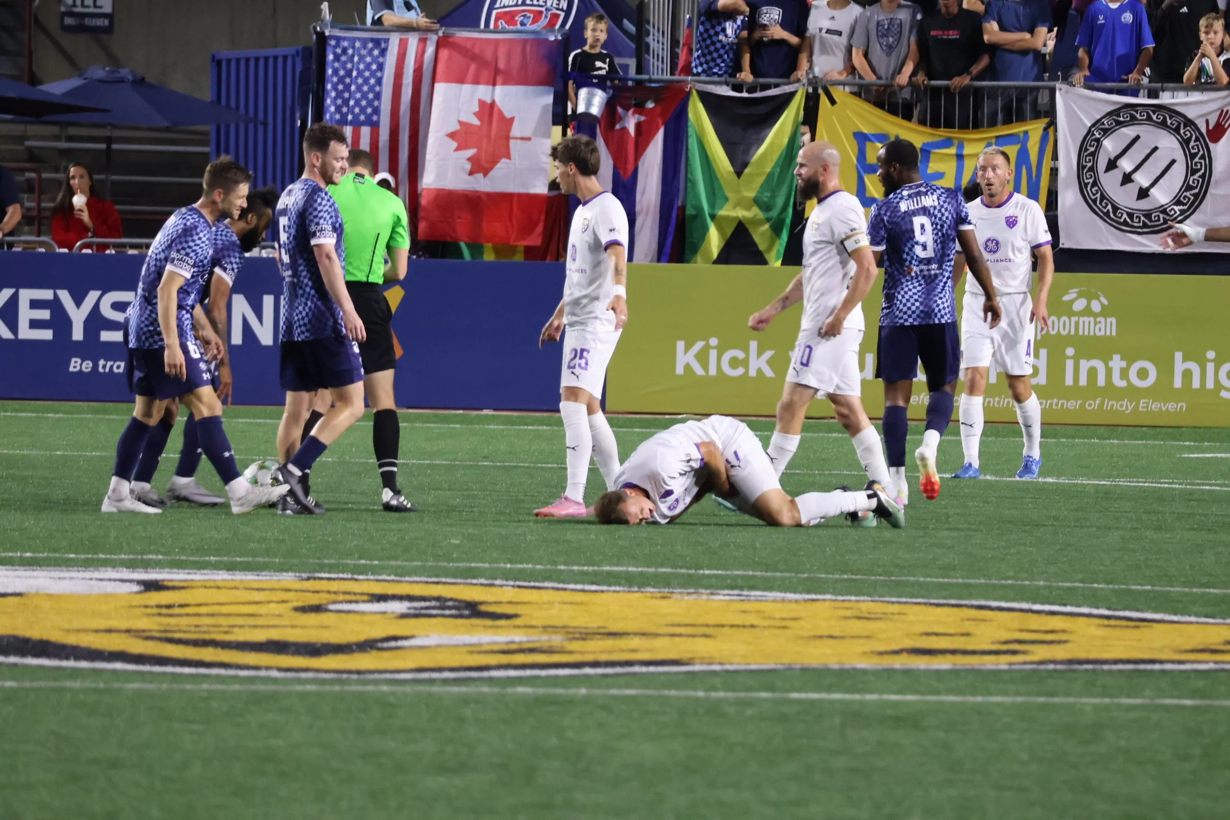 Ownby watches Lambert’s header earn a second goal for Lou City. Indy’s #5 is in tears.