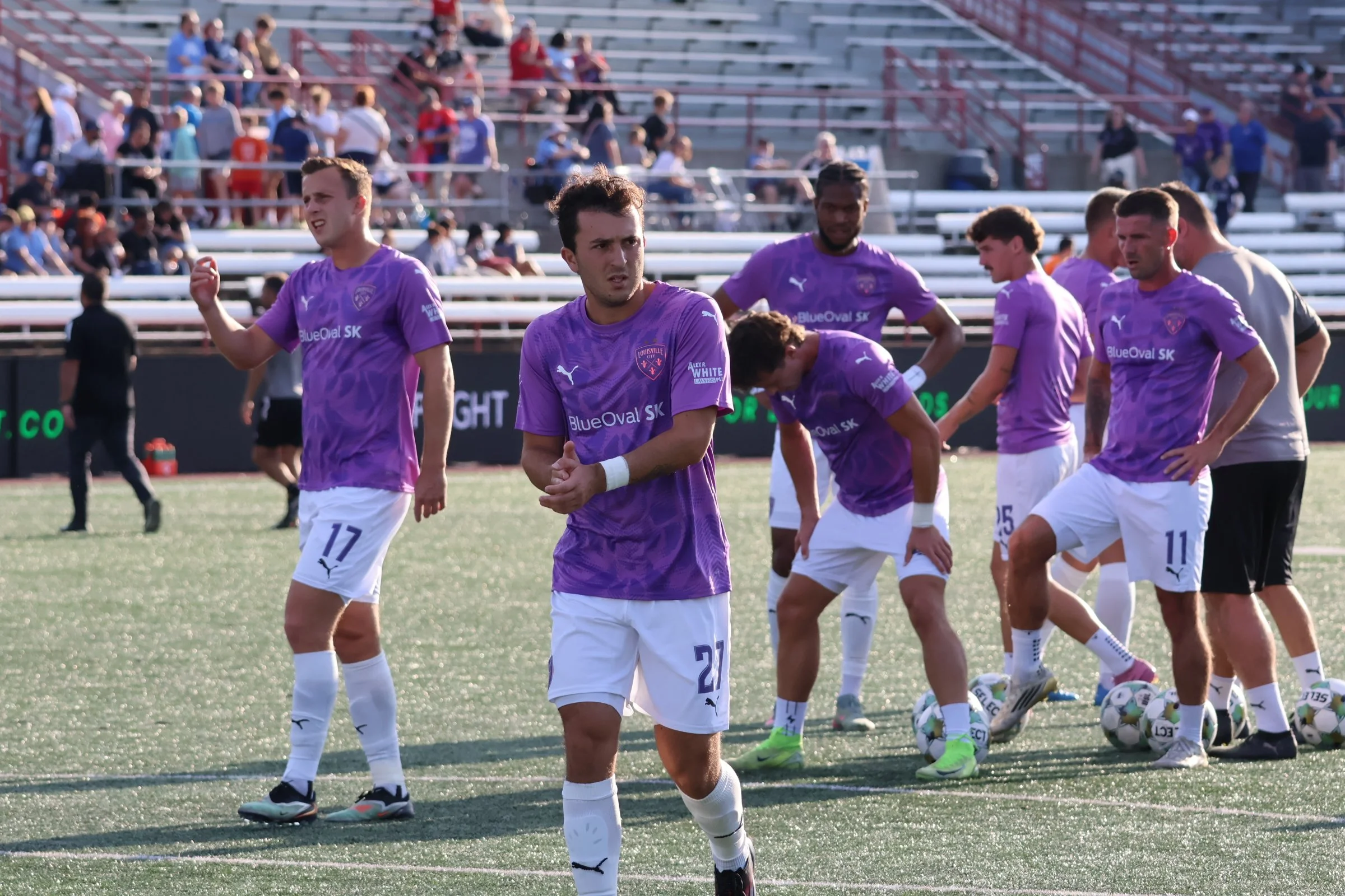 Lou City warms up on the pitch with stretches and goal kicking while the Indy fans warmed up their vocal cords with warm ale and hate.