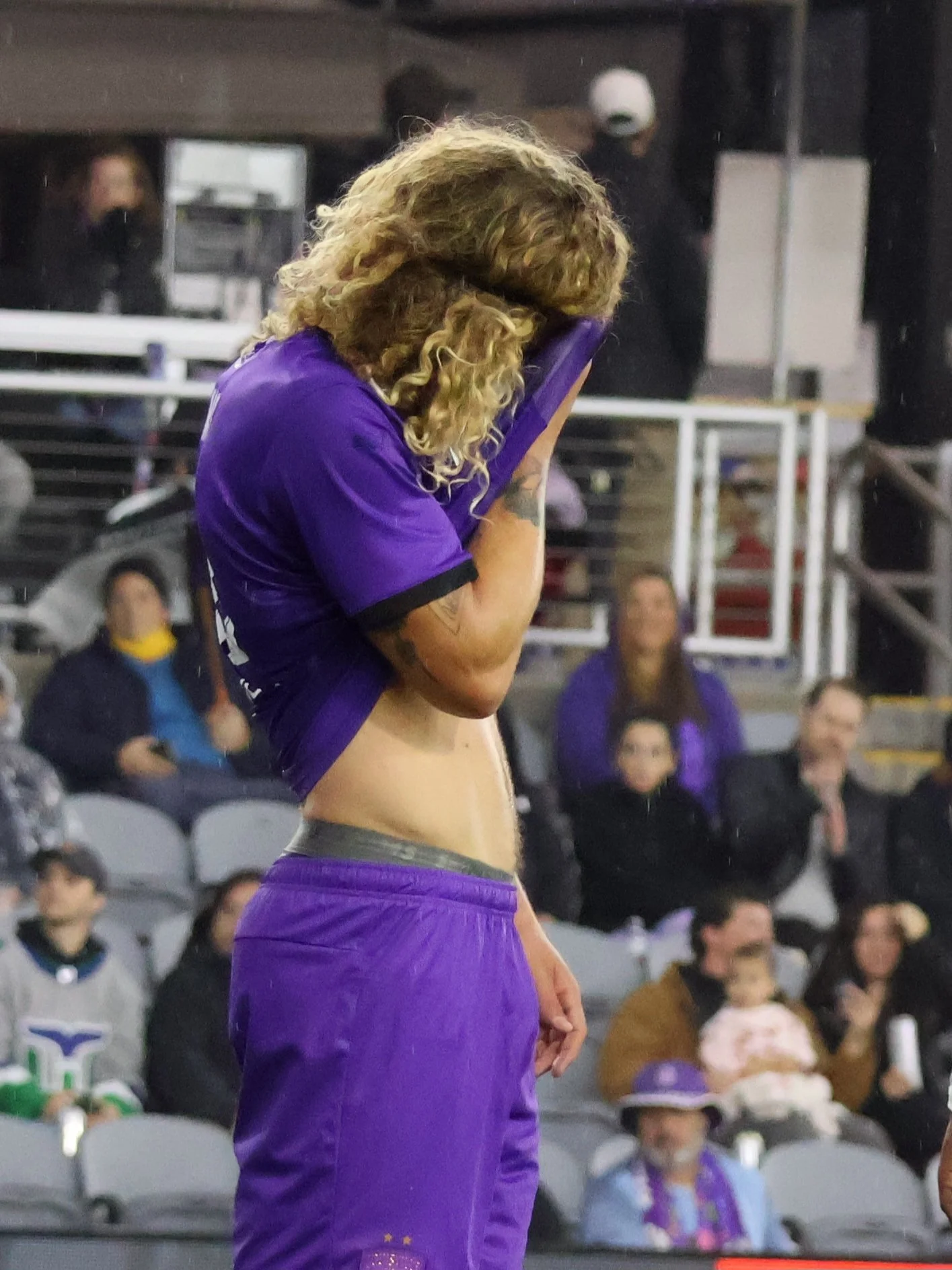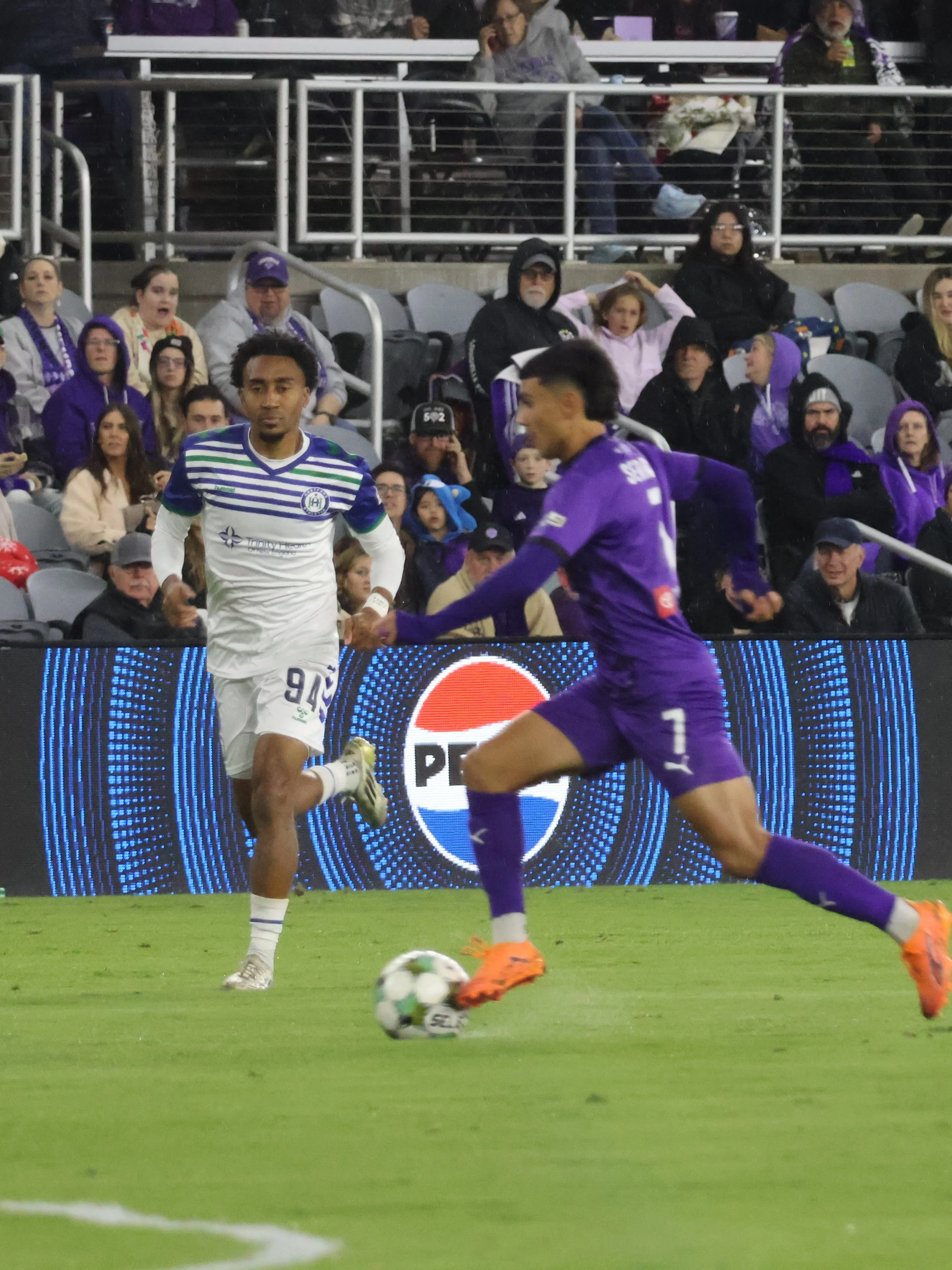 Only one celebration and it’s the opposite corner of where I’m sitting. I text my bonus daughter to tell her that her favorite player has scored and she really should’ve skipped that outdoor wedding because she could be sitting in the cold at Lynn Family stadium and she would’ve seen a goal and purple smoke. I’d like to see a wedding offer that!