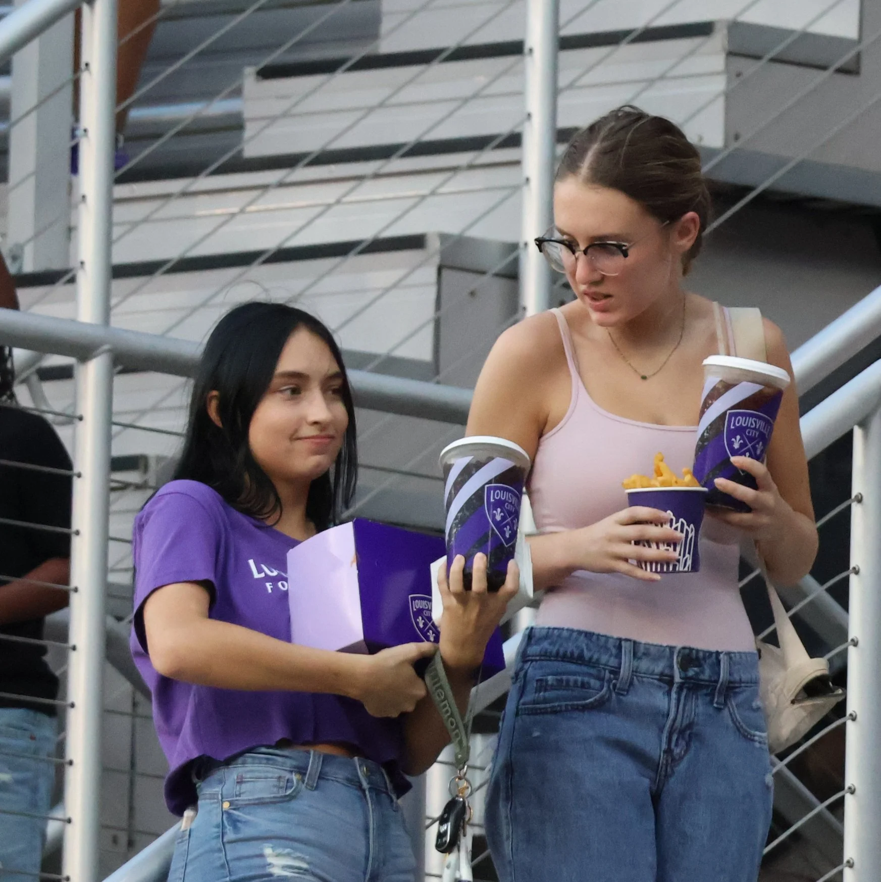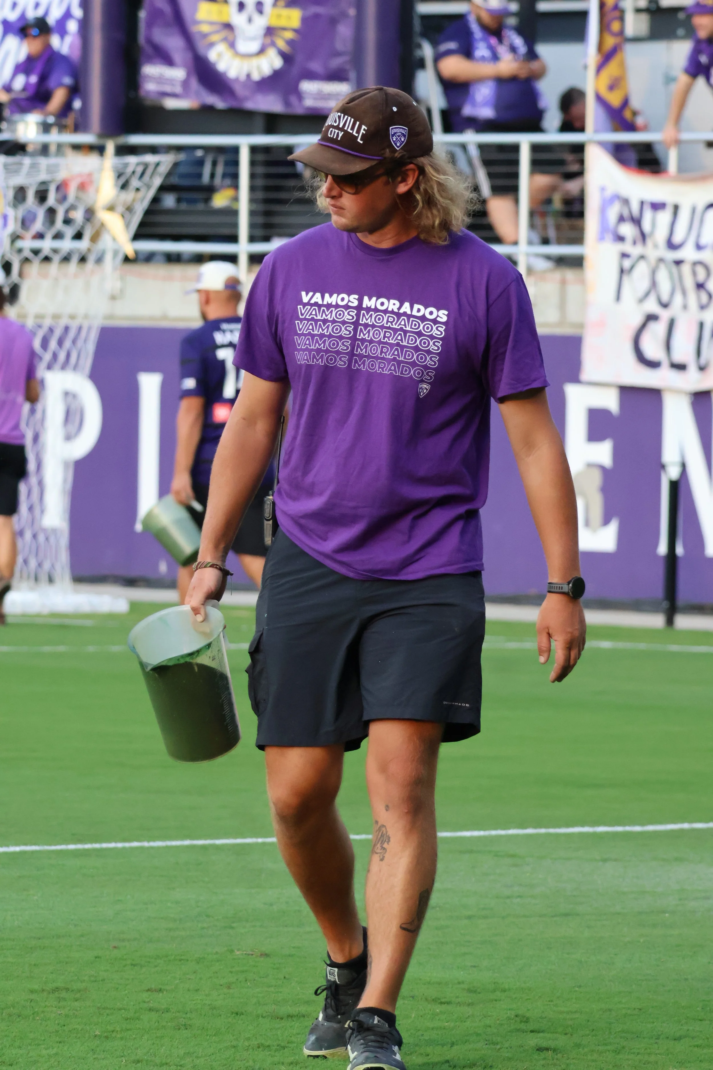 But before I get to the four goals, or the crowd at Lynn Family doing the wave, let’s look at the pre-match fun that was had by all. Fans were lined up deep outside both main gates to get inside early for a free Lou City shirt and so many other goodies! Fossi Lou balloons offered free balloon creations (in mostly purple, of course!), there were inflatables, and there was face painting!