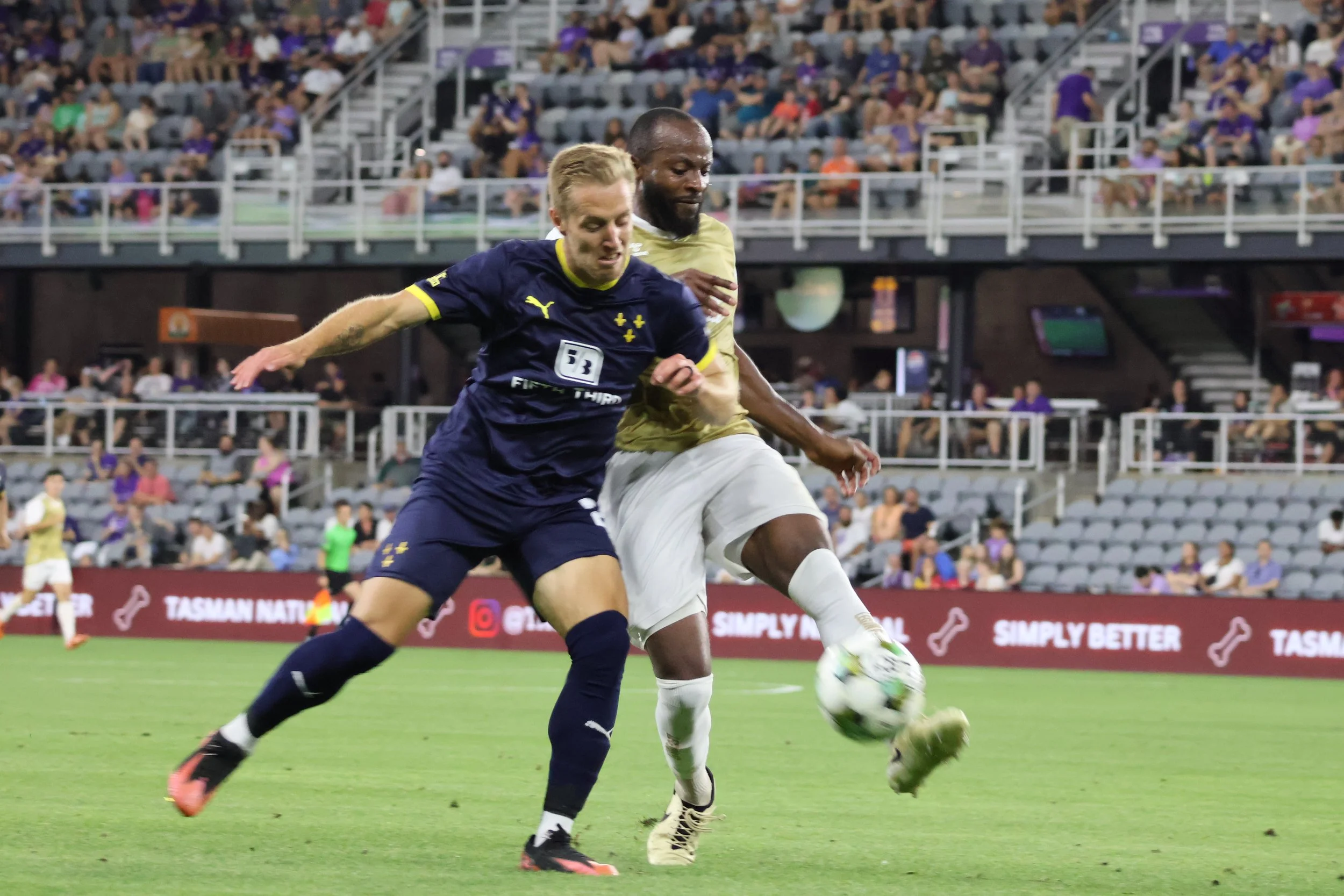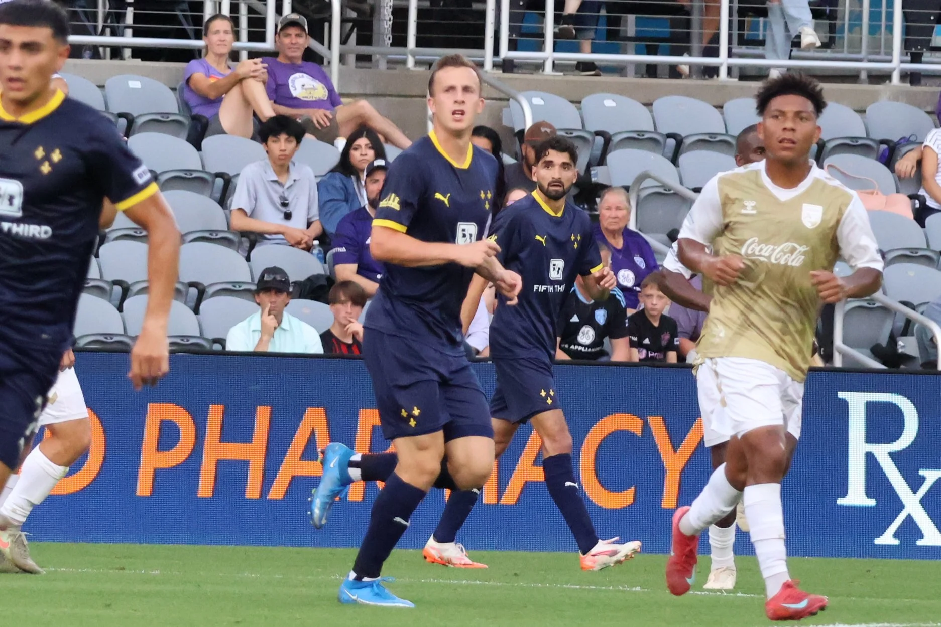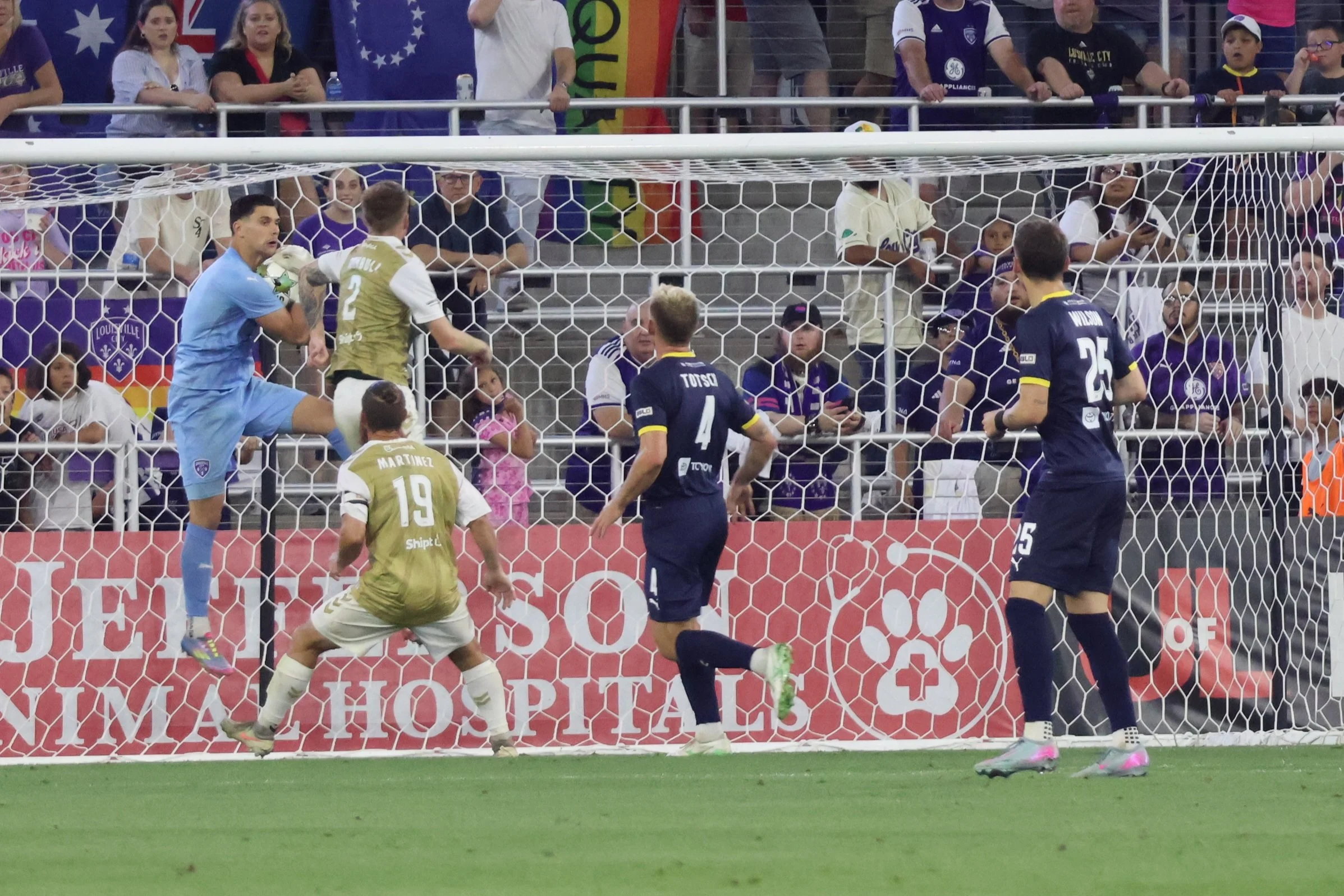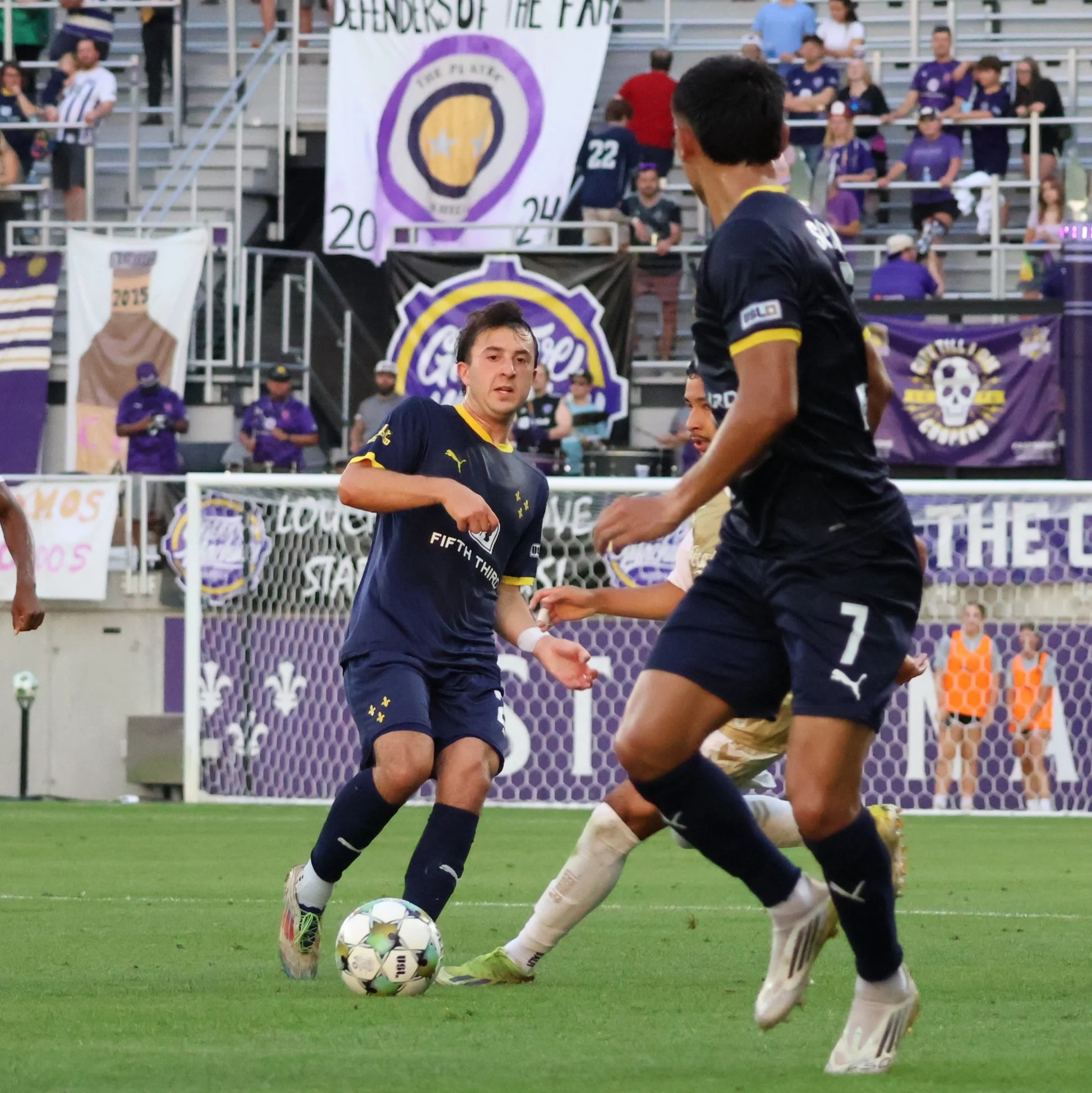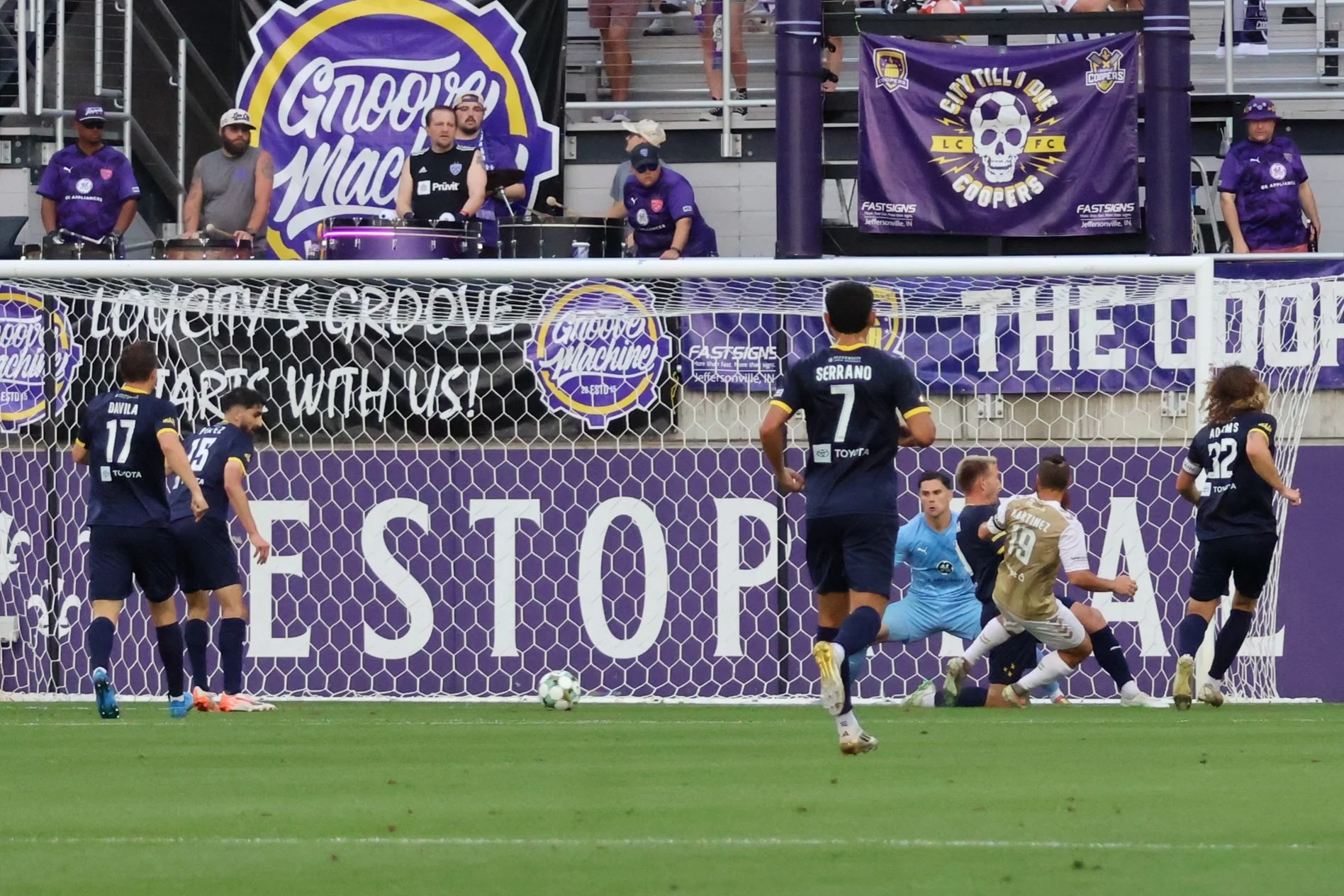 The Boys in Purple - can I call them that if they’re clearly wearing Navy? Anyway, they played a lot of defense in the first twenty minutes. I think the only thing that kept this ball out of the net was the death stare from Damian Las.