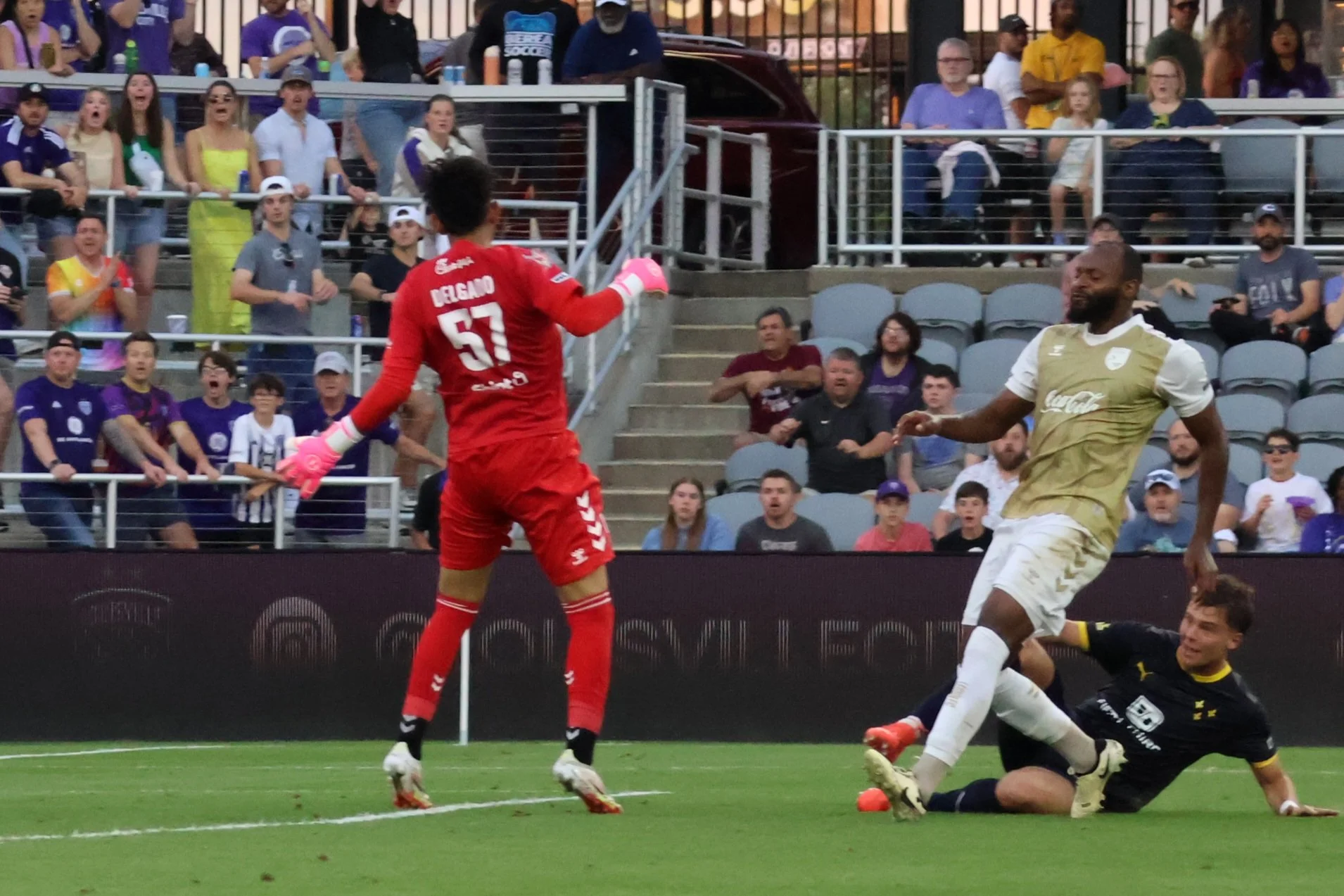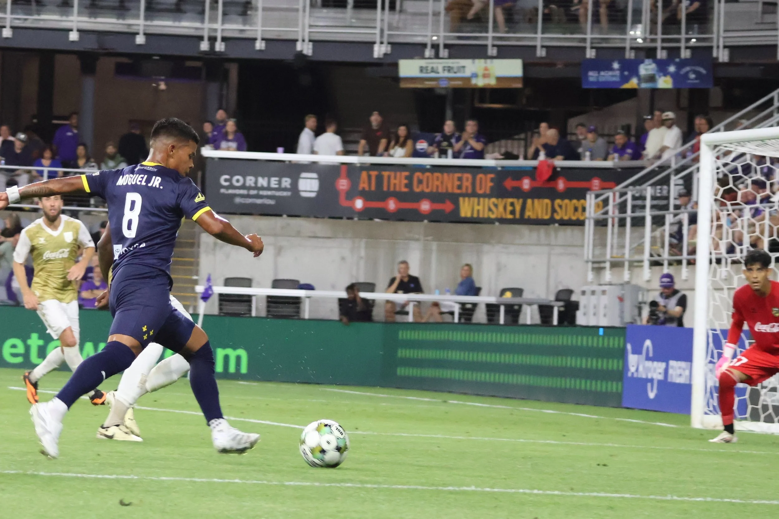 Corner kick from Davila magically finds its way to Goodrum who risks a punch from the Keeper on this header for his 3rd goal.