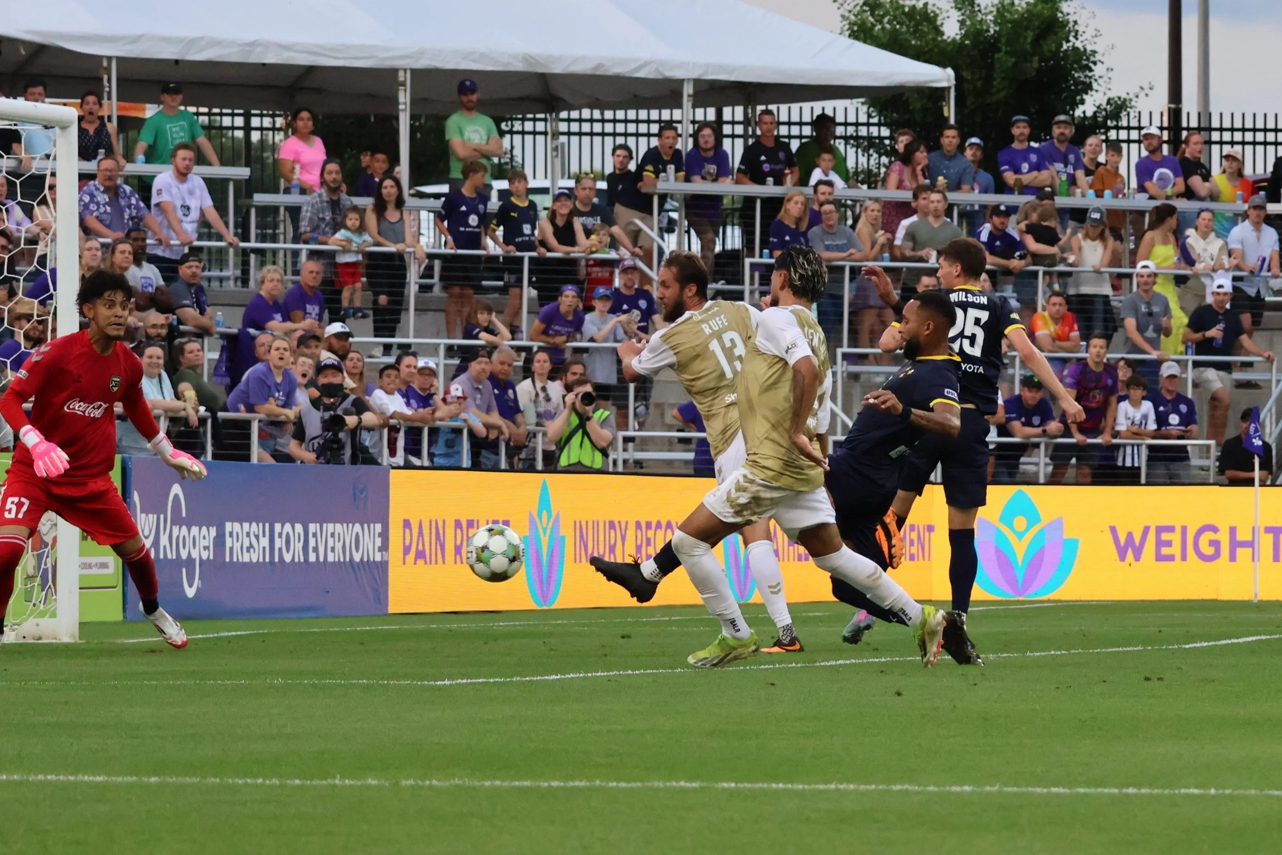 The snap is entitled “where even is the ball?” because I don’t think anyone knows. Fair guess would be “in the net” because Goodrum is right there, and the Legion Keeper is off trying to play leapfrog with Kyle Adams.