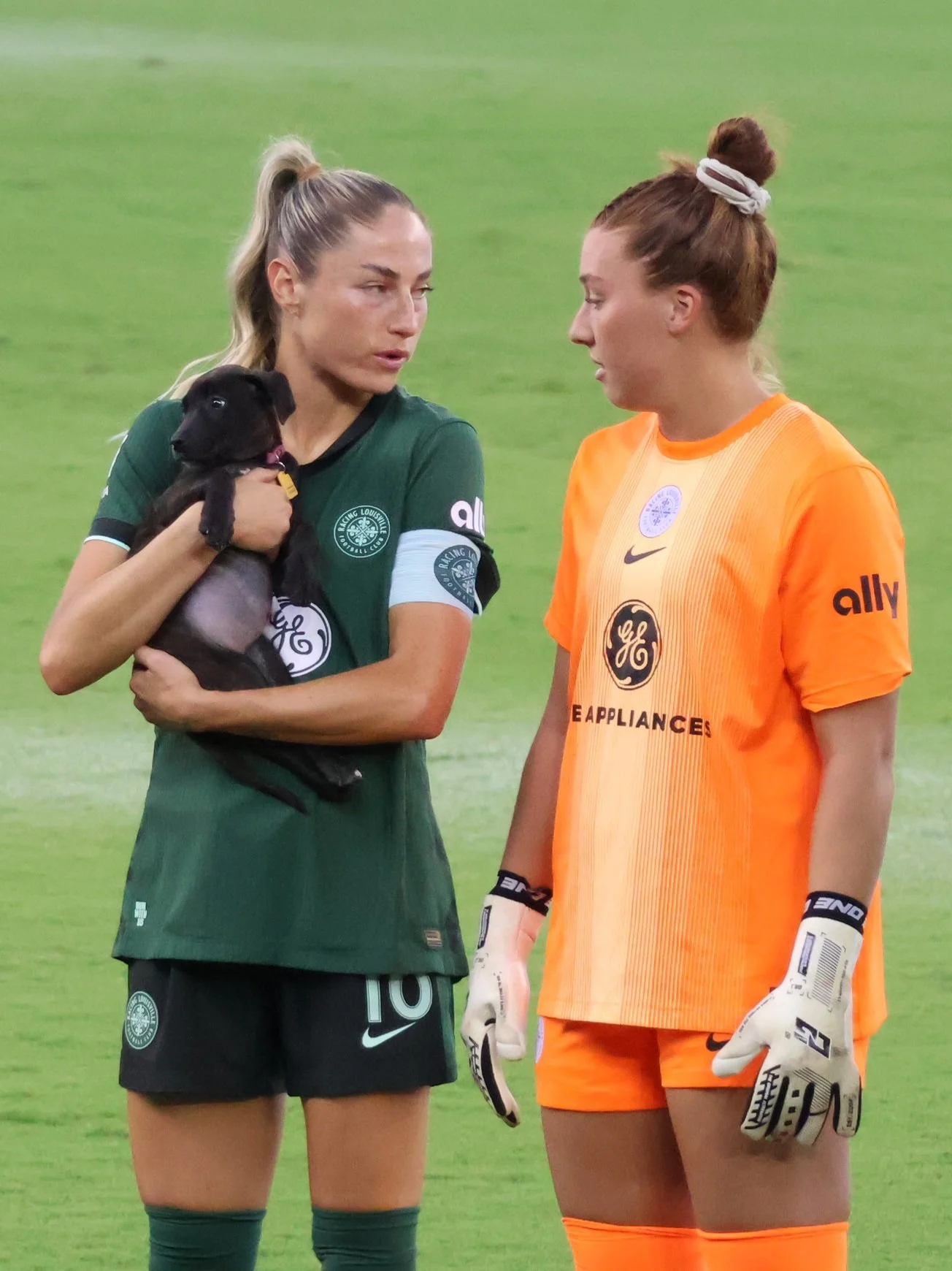 It was Pups on the Pitch night, and there were adorable doggos everywhere including the pre-match line-up, where Janine Sonis colluded with Jordyn Bloomer on an exit strategy that would allow them to bring the pretty choco dog home. Lucky for us, they decided to stay and play.