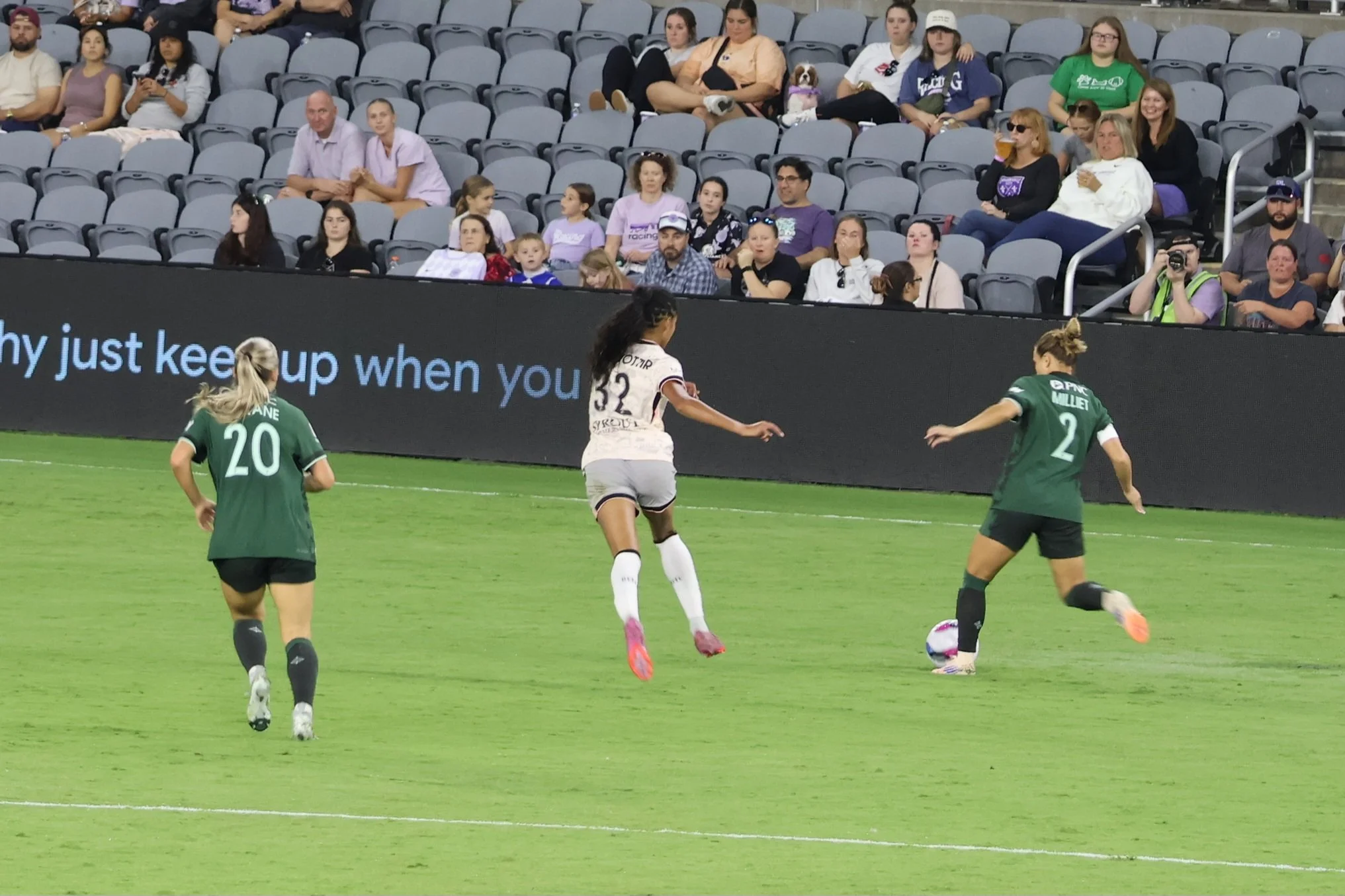 Look who’s back and ready to help Racing score! Lauren Milliet entered the match to a welcoming roar from the crowd.