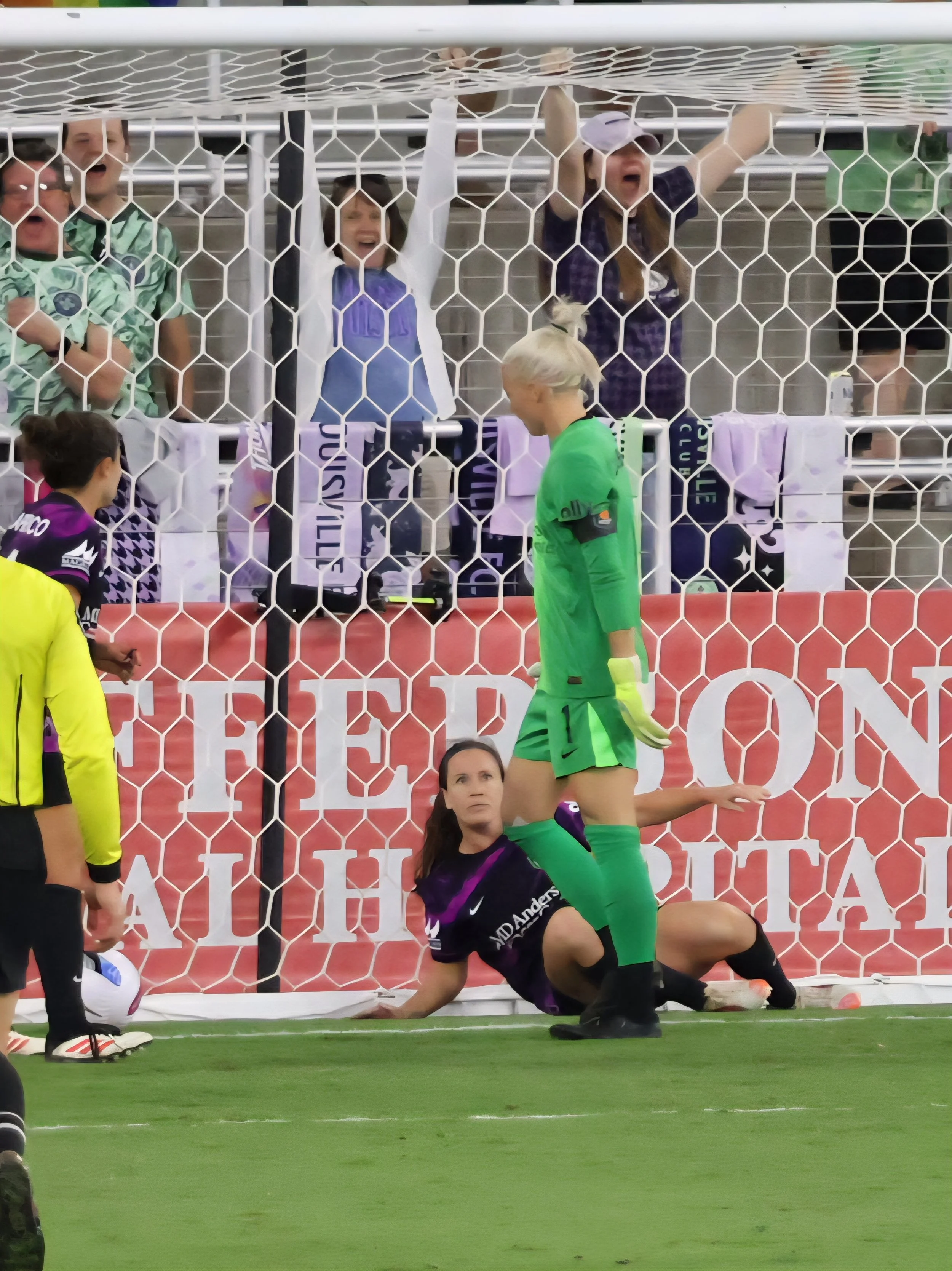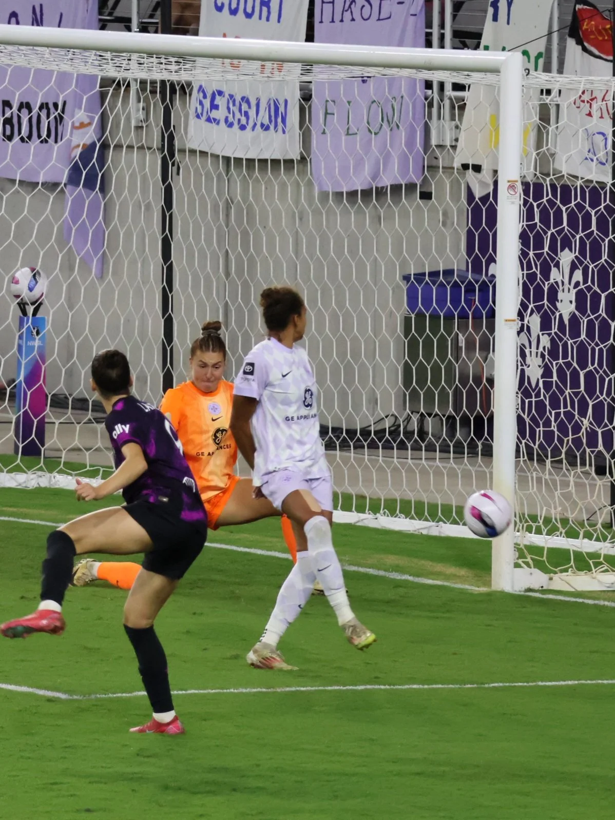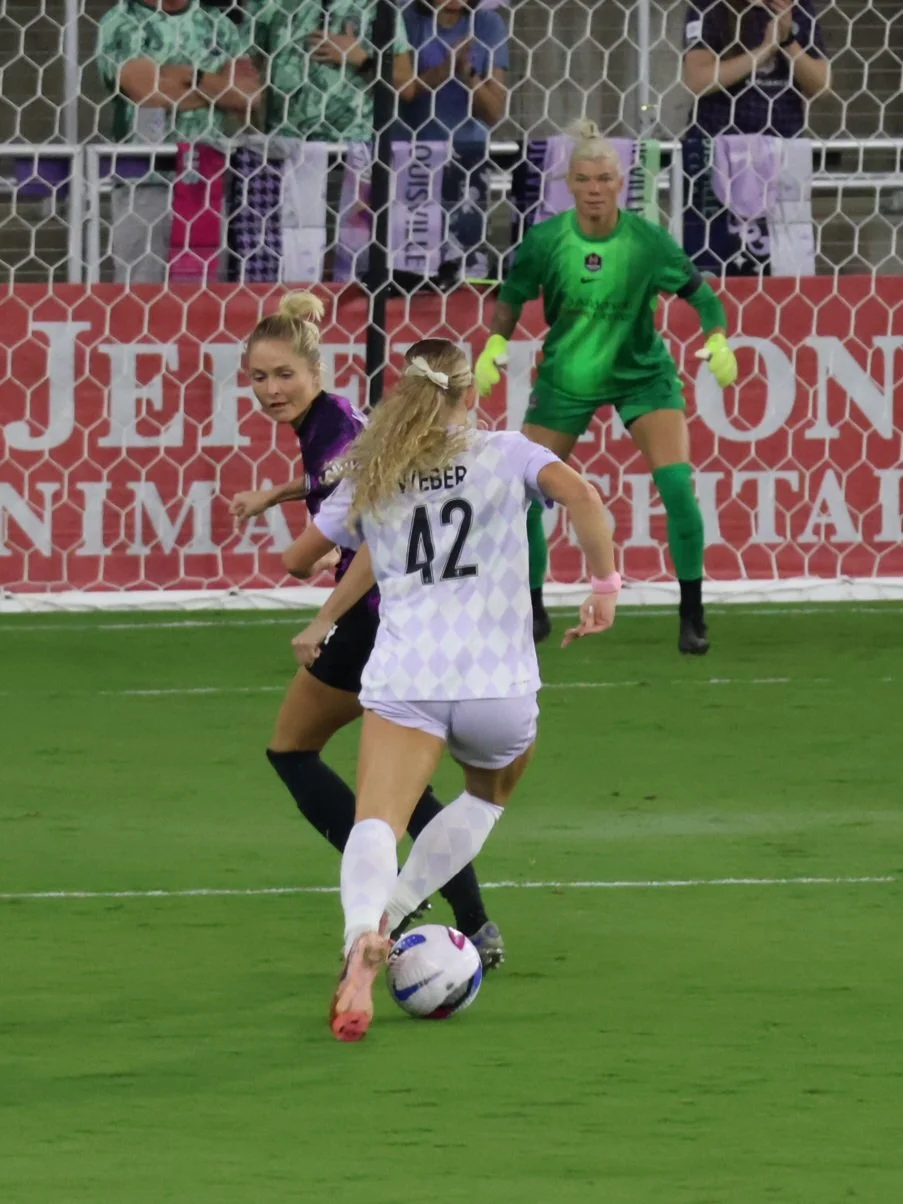 Weber making her run for the goal. (Marketing idea: Target should sponsor all of Racing’s goal runs. Nobody asked for Bone Dry yellow card but here we are. Why not “She’s making her Target run for the goal…” and they could set up little dollar sections around the stadium so we could all do little Target run? Sorry husbands.)