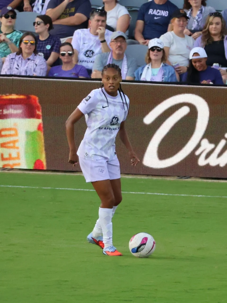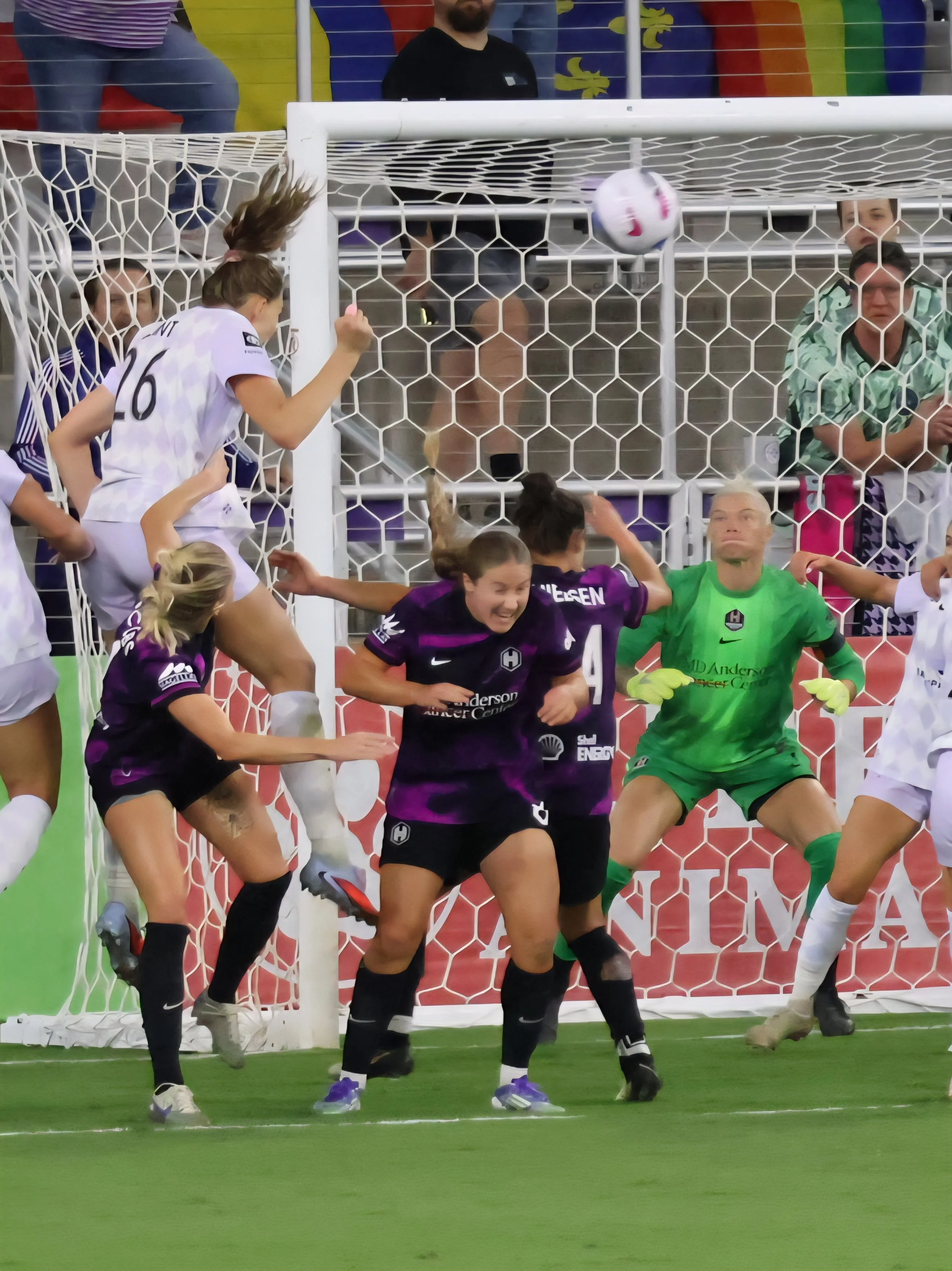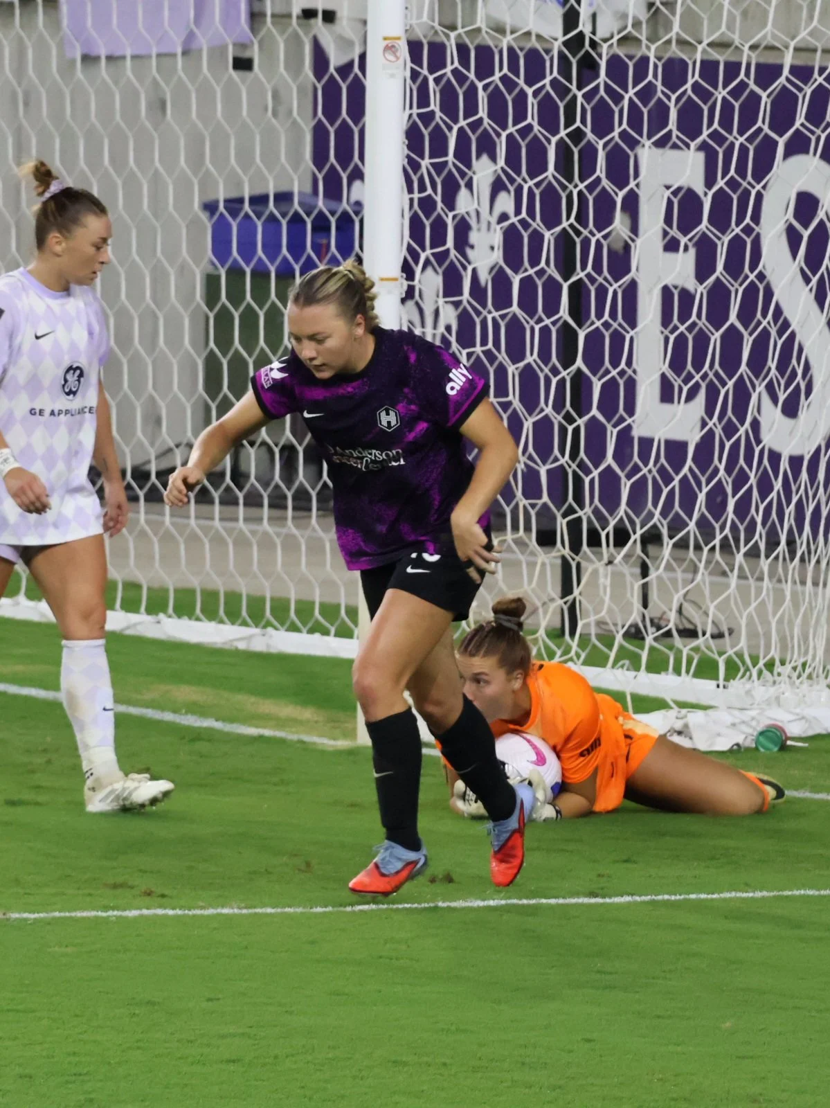 Weber making her run for the goal. (Marketing idea: Target should sponsor all of Racing’s goal runs. Nobody asked for Bone Dry yellow card but here we are. Why not “She’s making her Target run for the goal…” and they could set up little dollar sections around the stadium so we could all do little Target run? Sorry husbands.)