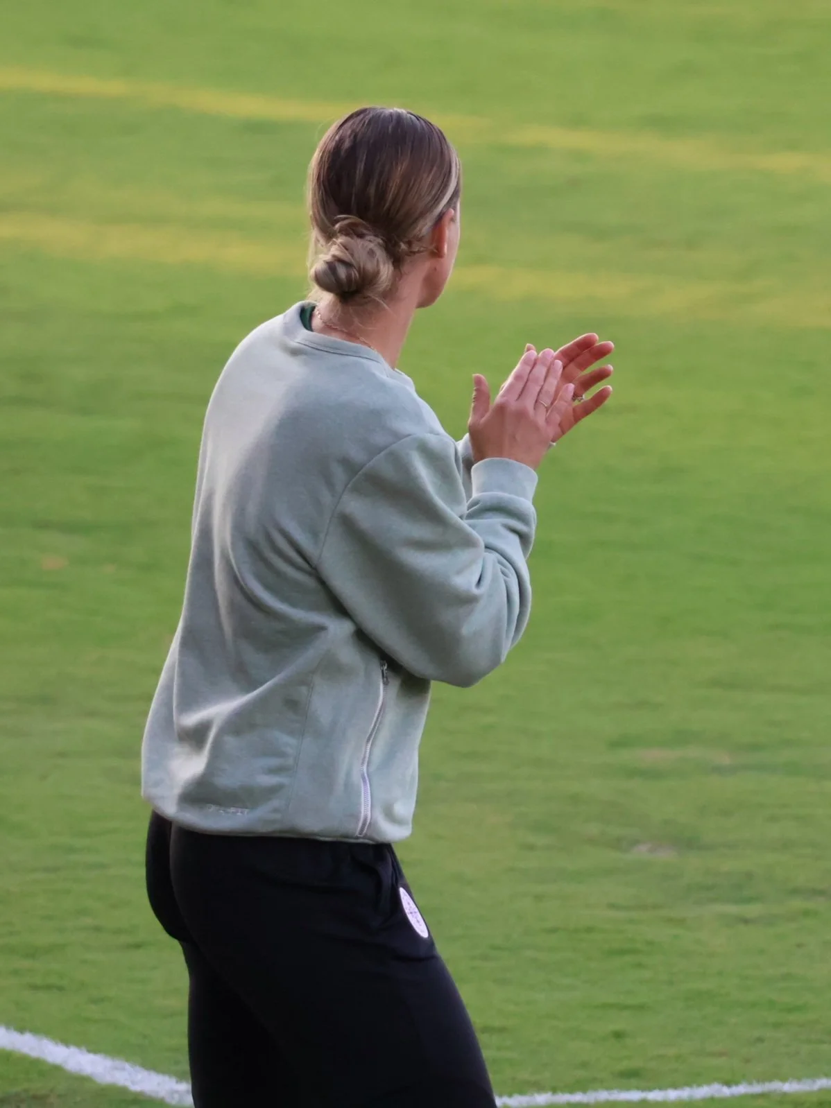 If - more likely when - we build a statue of Sav out front of Lynn Family stadium, it should be in this position, because she loves to point out how great the pitch looks right in front of her at all times.