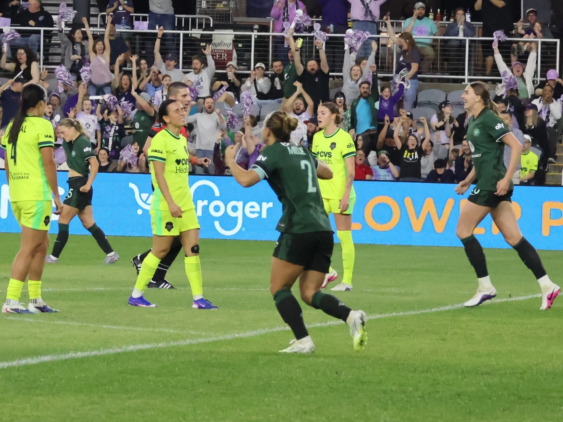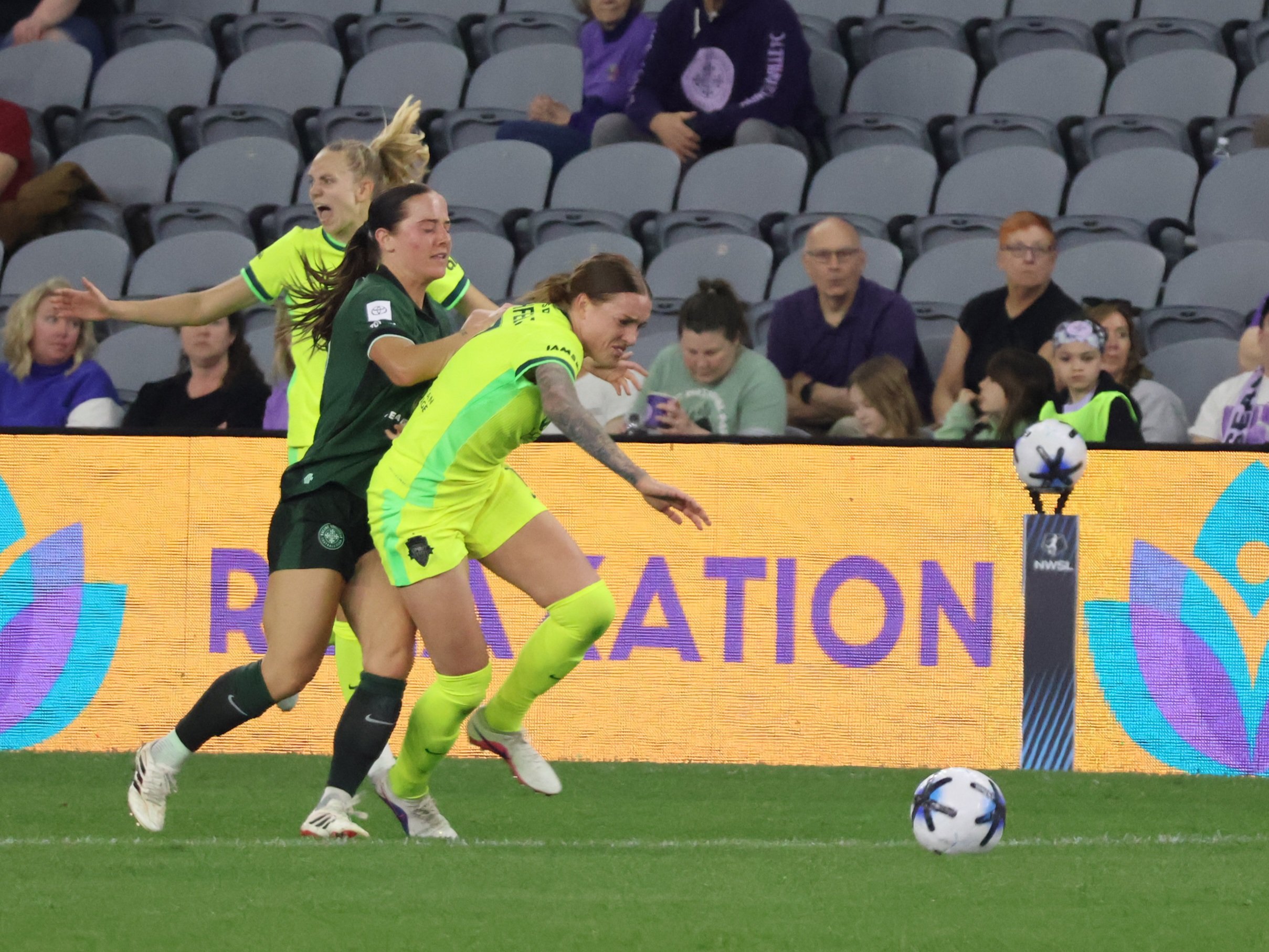 After Racing’s first goal by Kayla Fischer, a Washington Spirit player can’t help but cringe. I know it’s cringe to say cringe these days, but if I’m using cringe to mean the original meaning of cringe, then it’s less cringe, right?