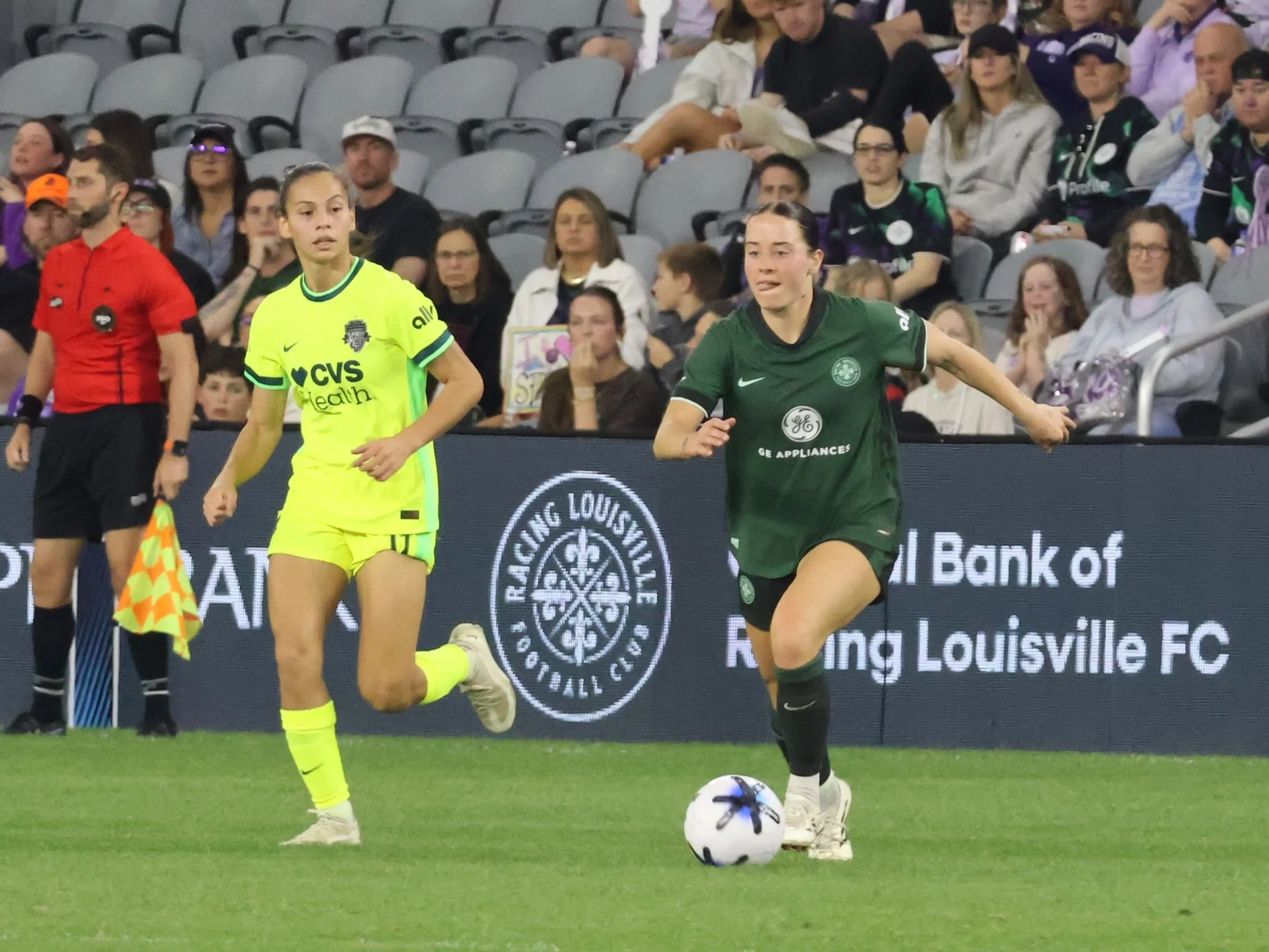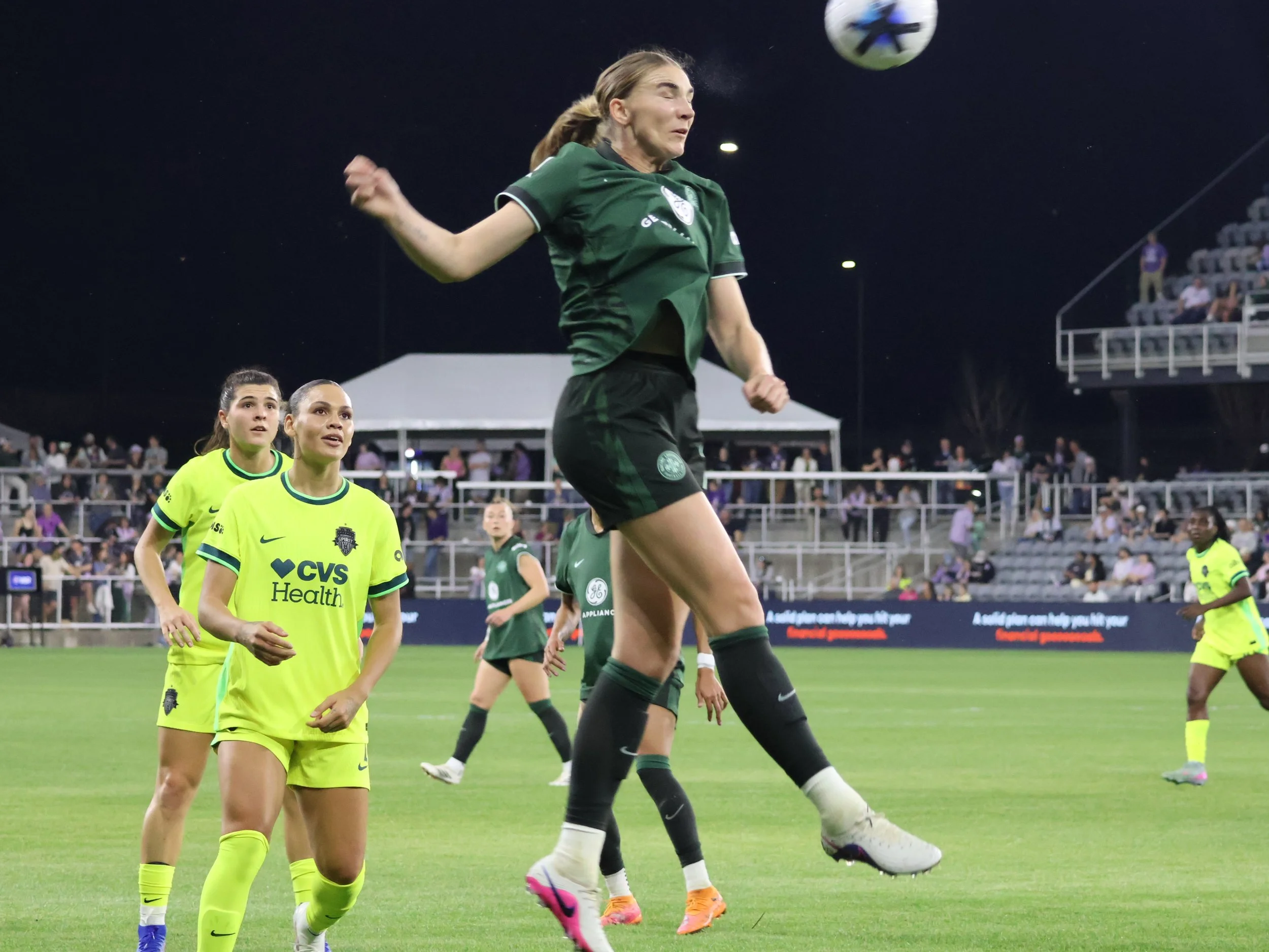 Trinity Rodman - oops I forgot I don’t use the names of the opposing team’s players because it humanizes them - This random Washington Spirit player looks clearly impressed with Taylor Flint’s header.