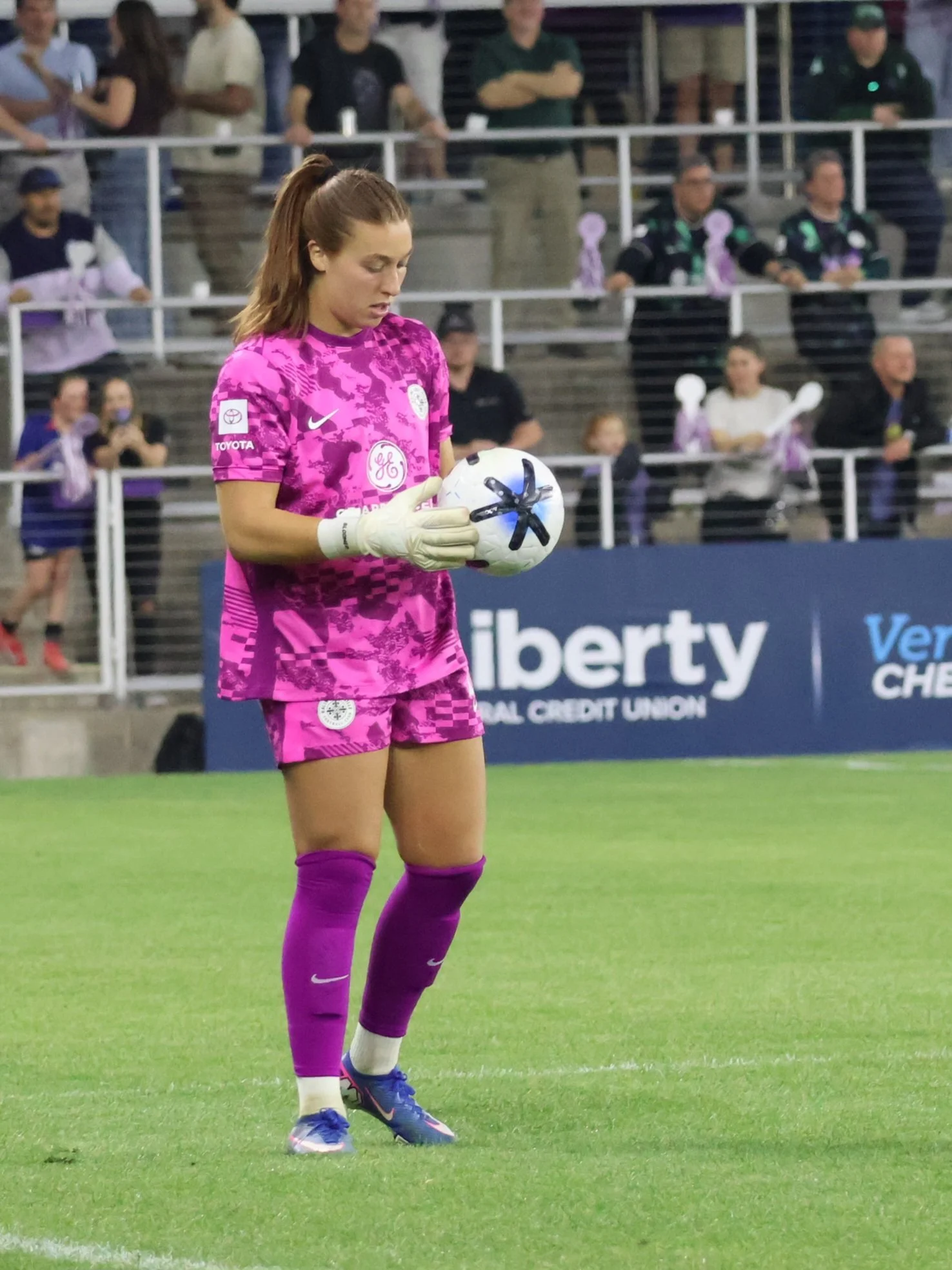 Blooms inspects the ball to make sure it’s properly inflated. With the Louisville Kings American football team sharing the stadium, teams are rumored to be sharing the pitch as well as the scandals. Can’t be too careful.